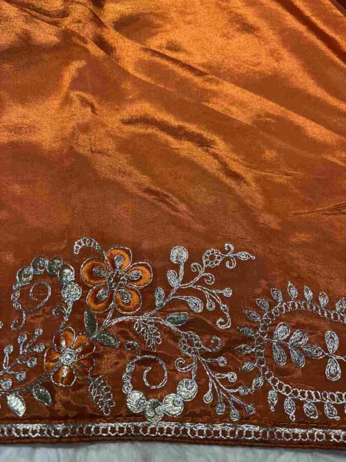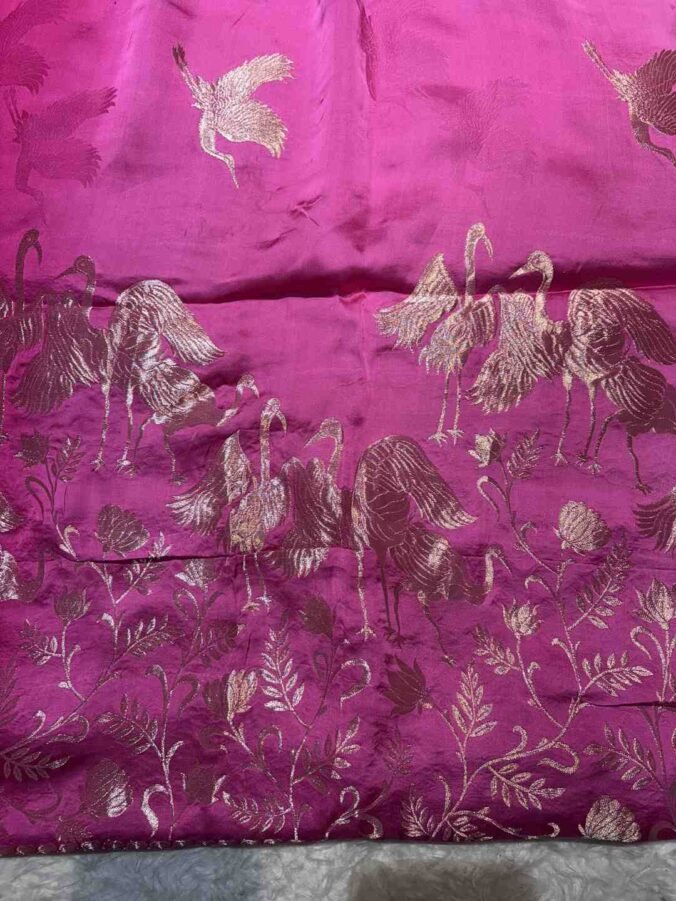 A stunning fusion of artistry: Intricate Pithon work enhances the richness of soft Silk fabric, creating a graceful, festive drape that feels traditional, elegant, and effortlessly luxurious.