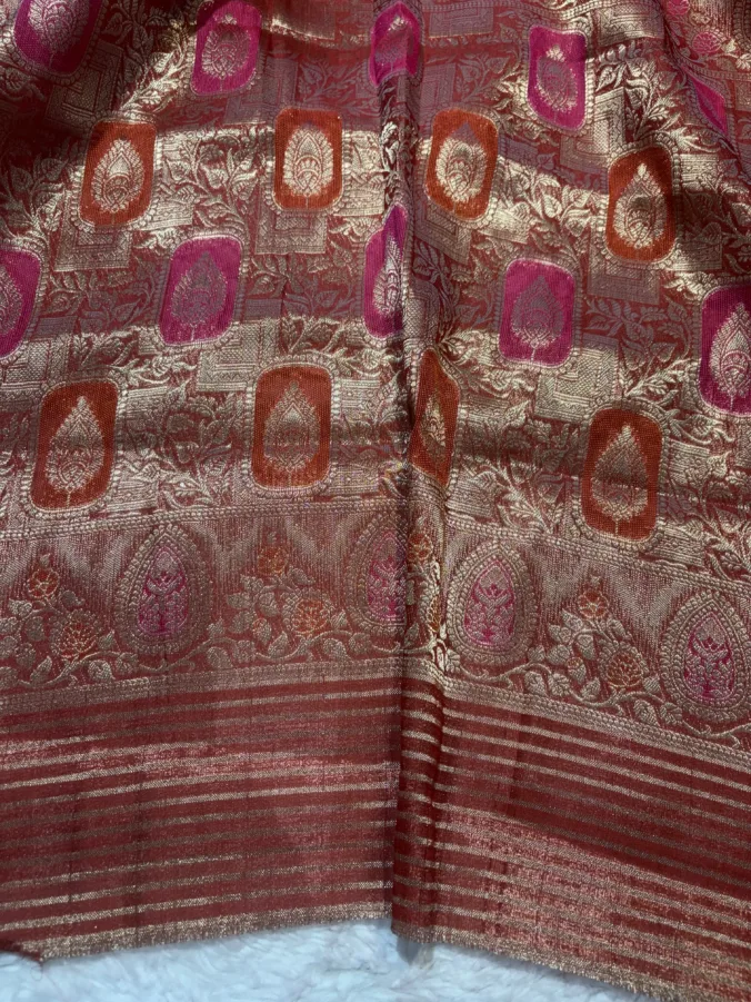 A stunning fusion of artistry: A graceful Banarasi-style saree in soft georgette fabric, offering a lightweight festive drape with timeless traditional elegance.