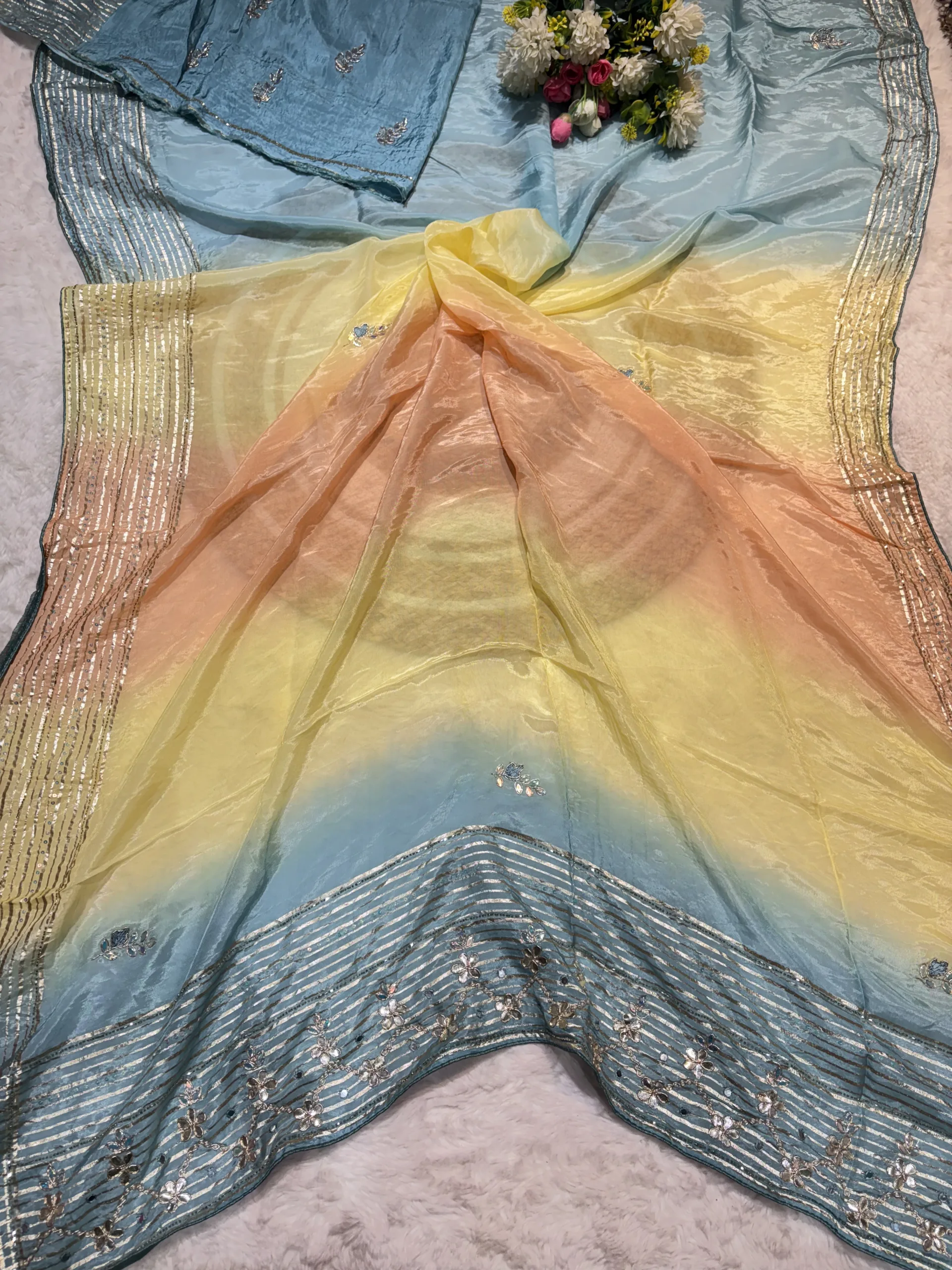 The fabric enhances every movement, giving the saree a luxurious and graceful finish.
