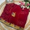 A stunning fusion of artistry: This exclusive collection features pure Bandhej Pomcha, pure Bandhej Chunri, and pure Bandhej Piliya—each crafted with authentic traditional techniques, offering vibrant colours, cultural richness, and a beautifully festive drape that feels timeless and elegant.