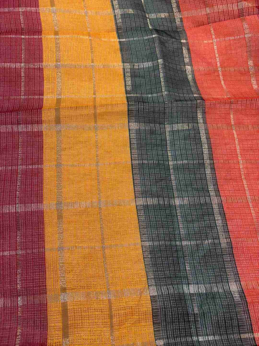 Intricate Zari Check weaving throughout the saree