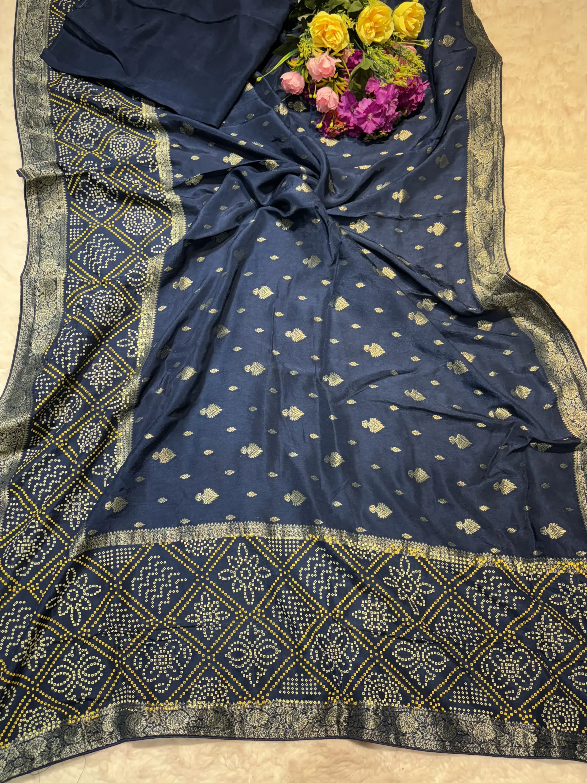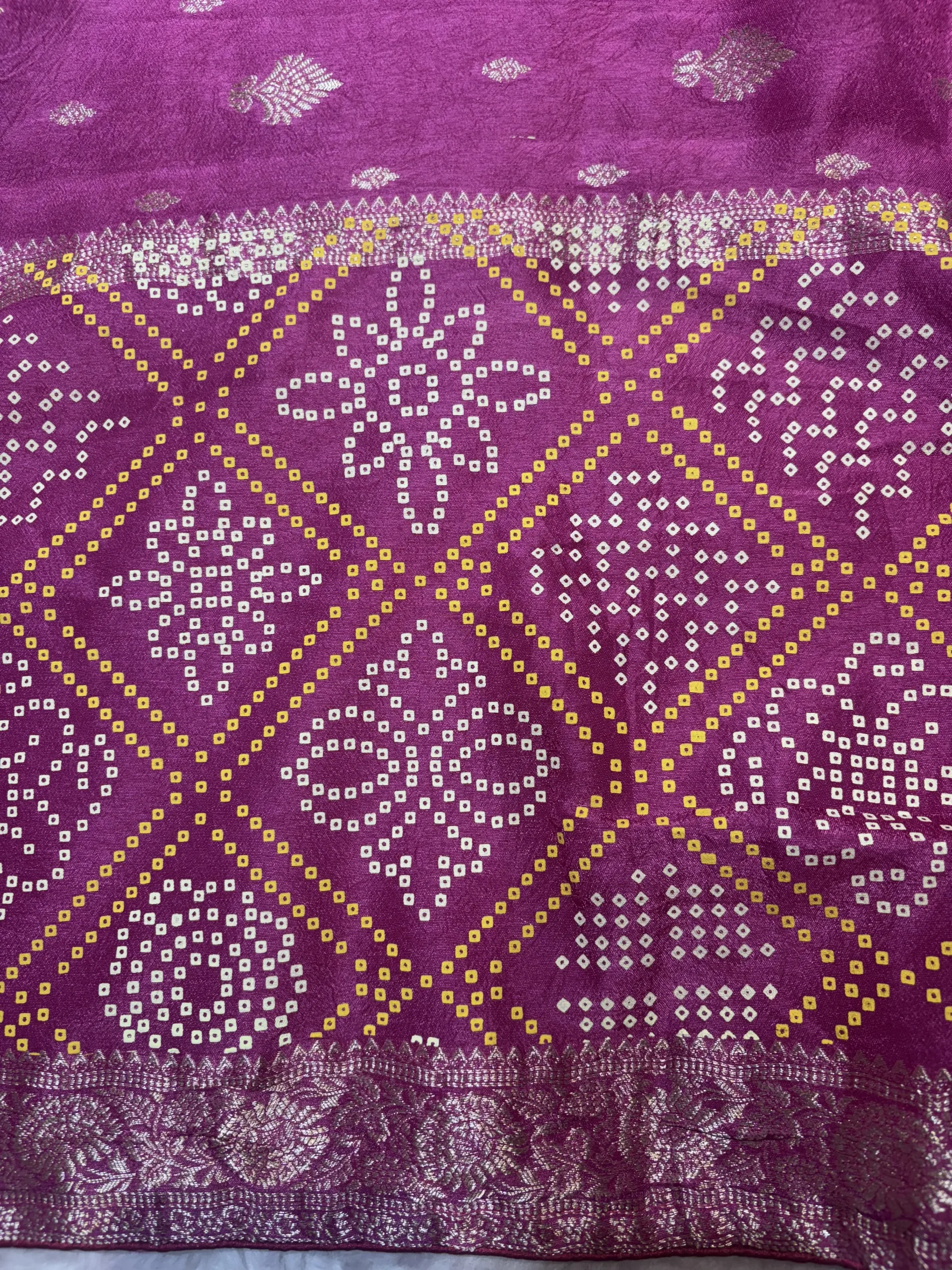 This saree features a new-generation Bandhej pattern, designed to stand out from typical traditional designs.