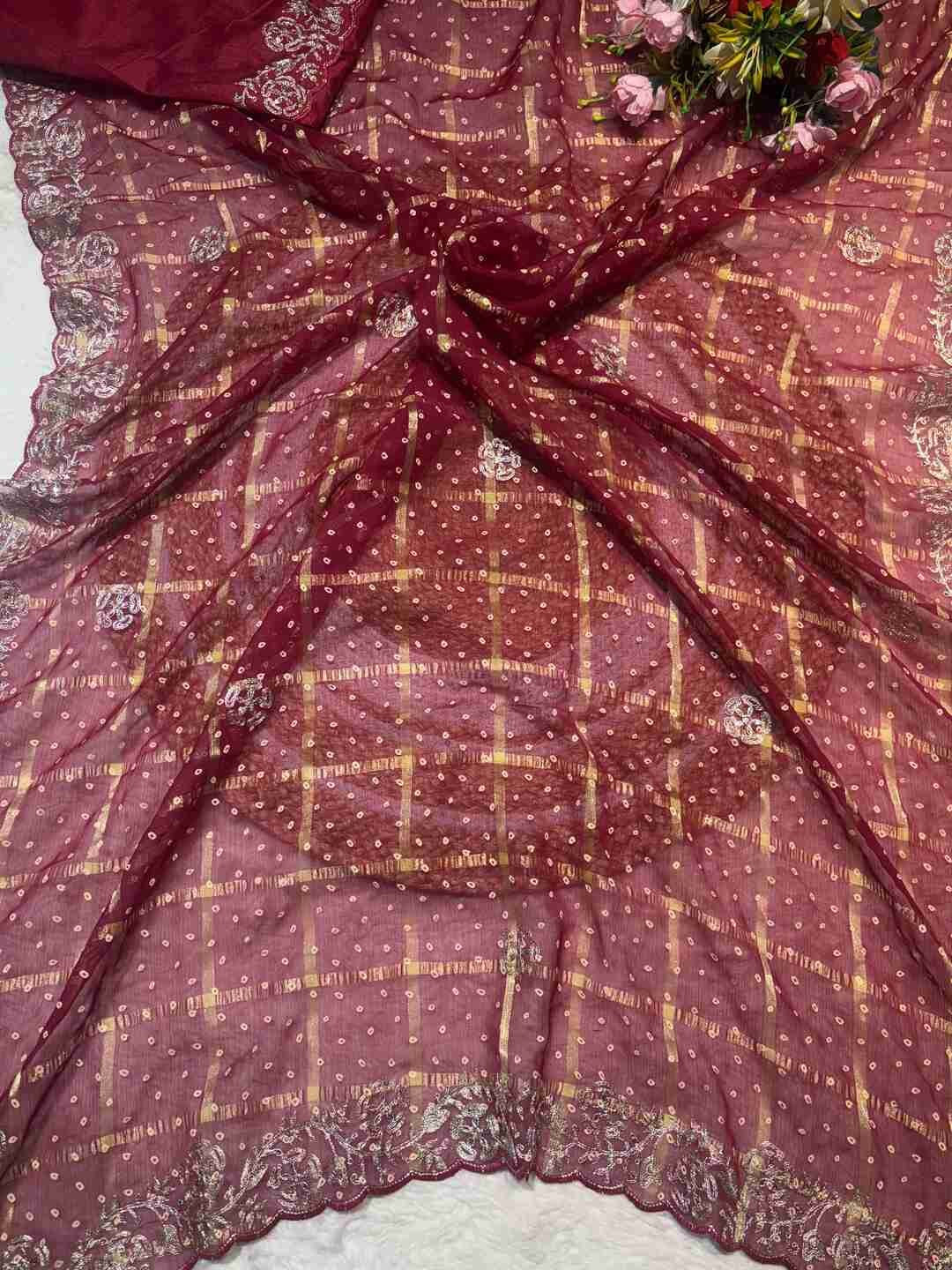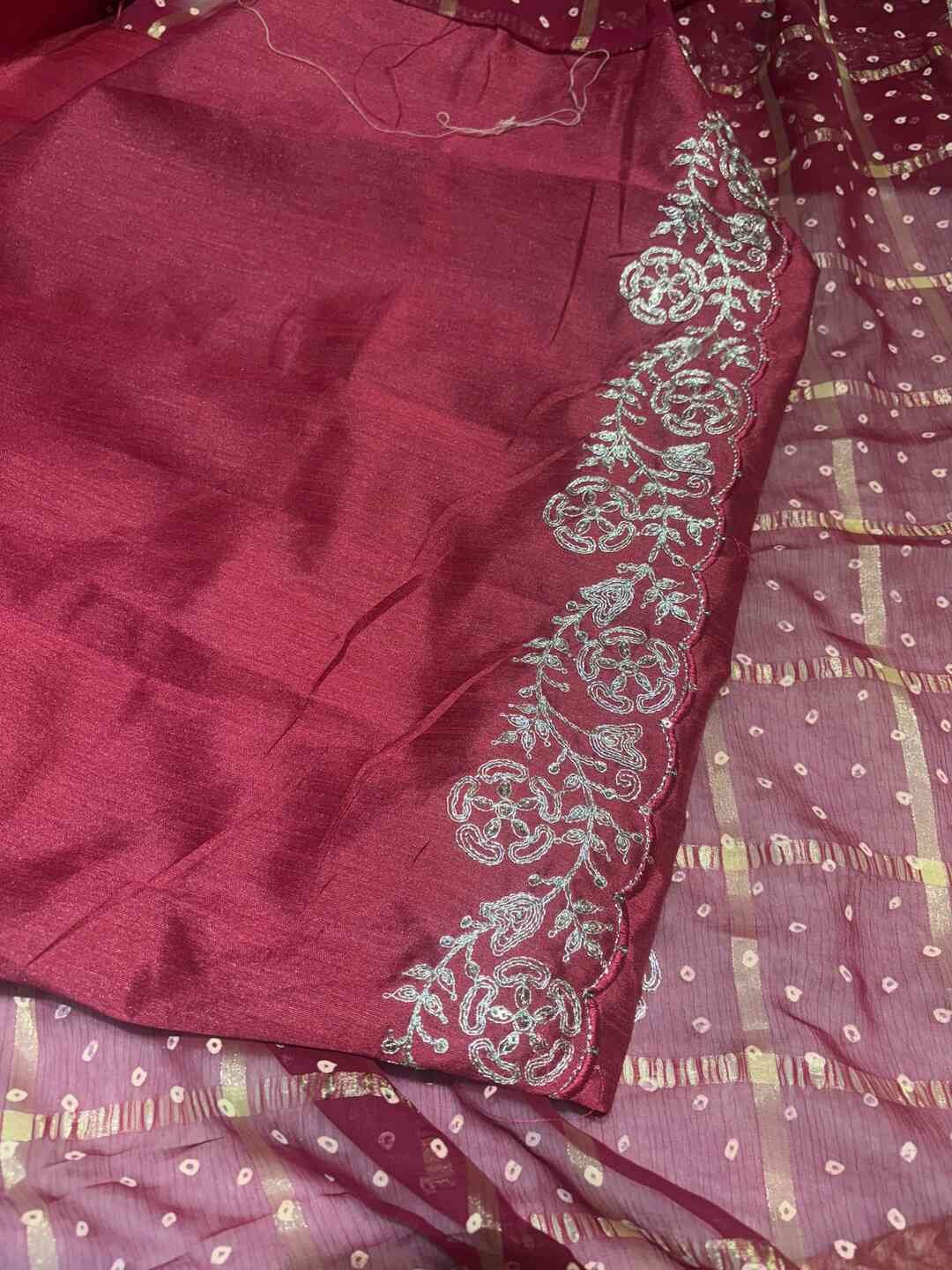 This exclusive new launch from NEELAM TRADERS blends the traditional beauty of Bandhej with the cultural richness of Ghatchola craftsmanship, enhanced with exquisite Pitton Work. Presented in an auspicious and vibrant Red colour, this saree is a perfect festive and wedding masterpiece for women who love deep tradition with premium finishing.