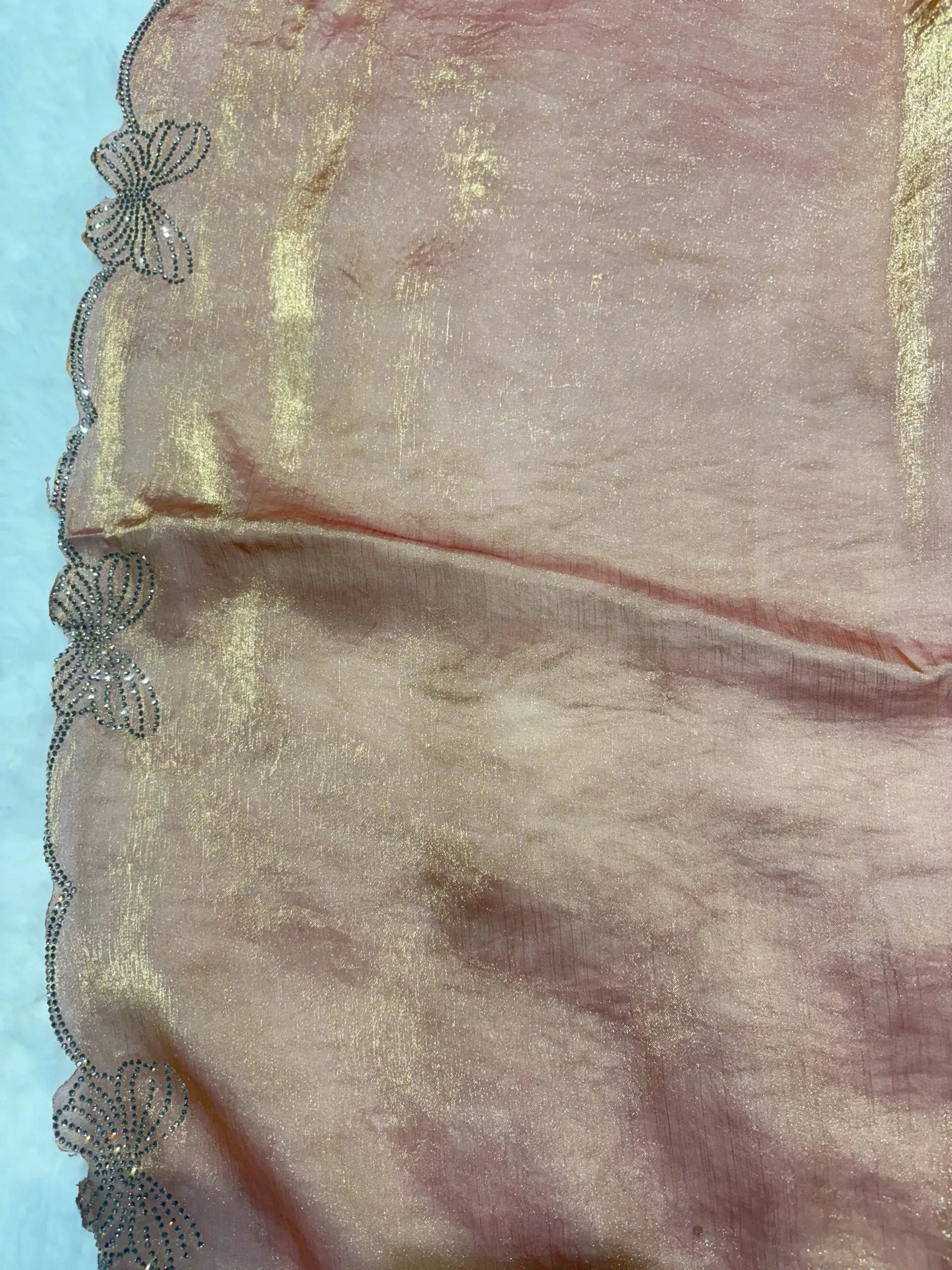 The fabric perfectly complements the sparkle of diamond embellishments.