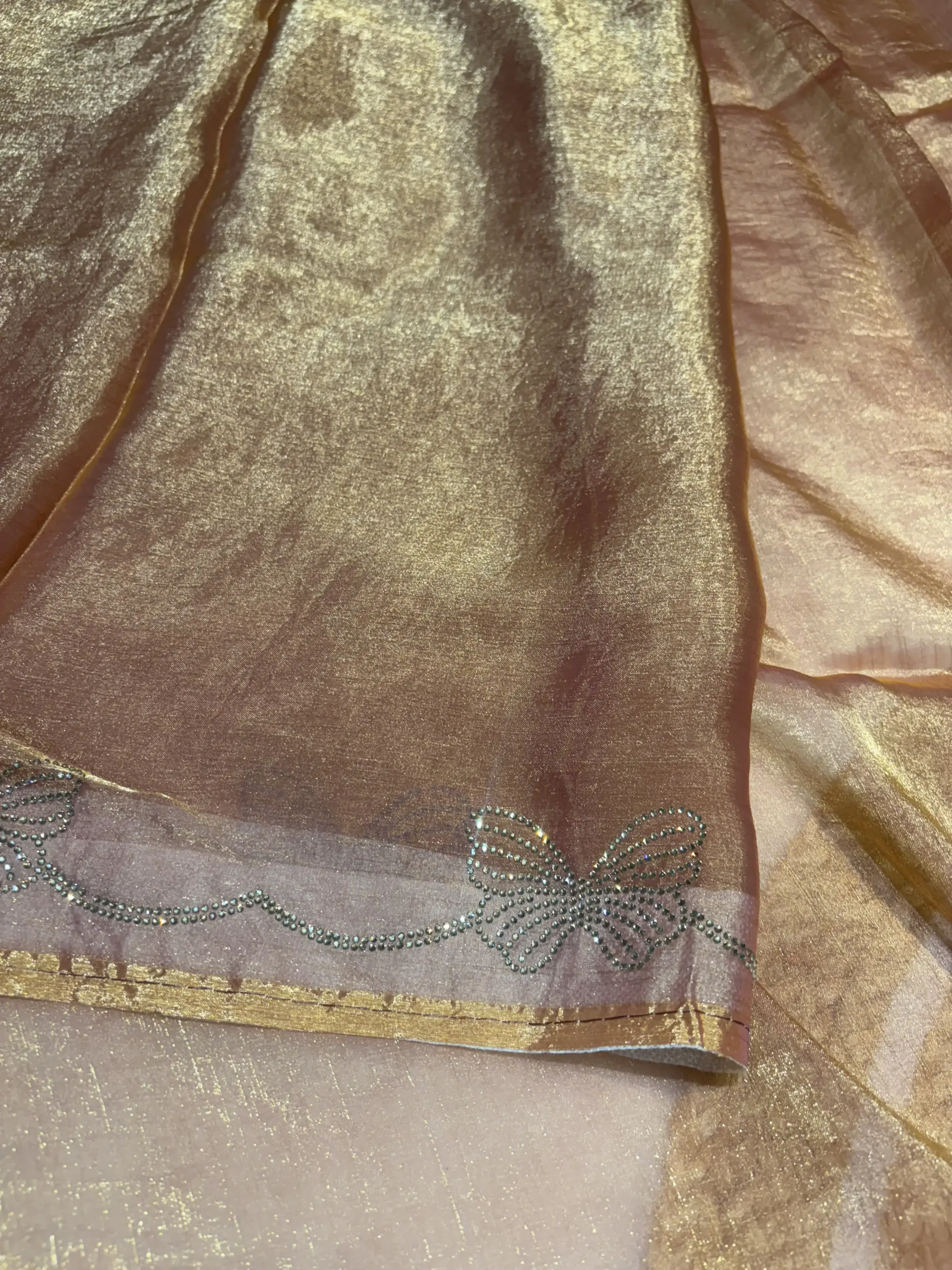 This saree features a Butterfly-inspired flowy design enhanced with Diamond work all over, creating a glamorous look.