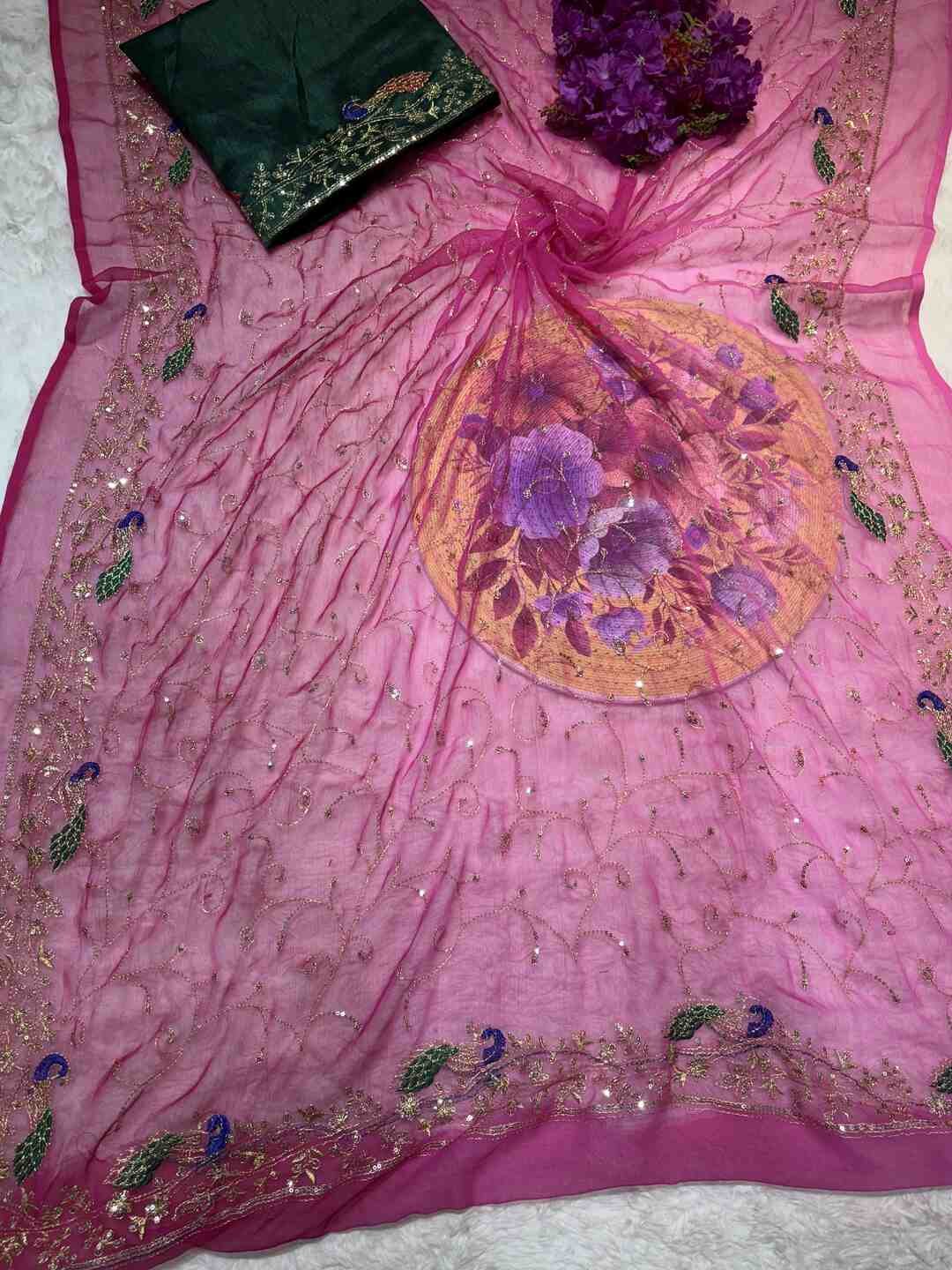 Chiffon adds a delicate, royal charm while keeping the saree easy to carry.