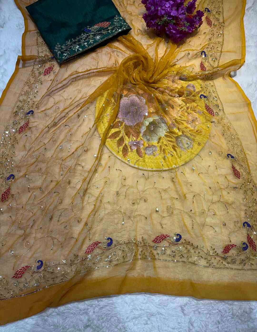 This grand new launch from NEELAM TRADERS brings you the elegance of the traditional Darbari style fused with the soft, flowy beauty of Chiffon fabric. Enhanced with intricate All Over Jaal Work, this saree offers a luxurious look while remaining ultra-light and comfortable—perfect for women who love graceful drapes with rich festive detailing.