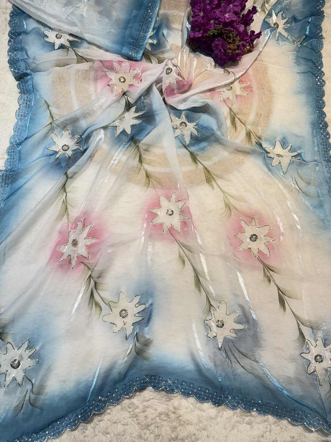 This saree features a complete designer finish, making it perfect for parties, events, and festive functions.