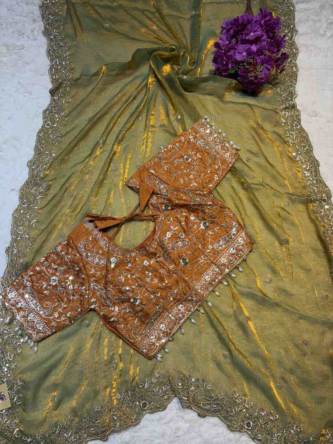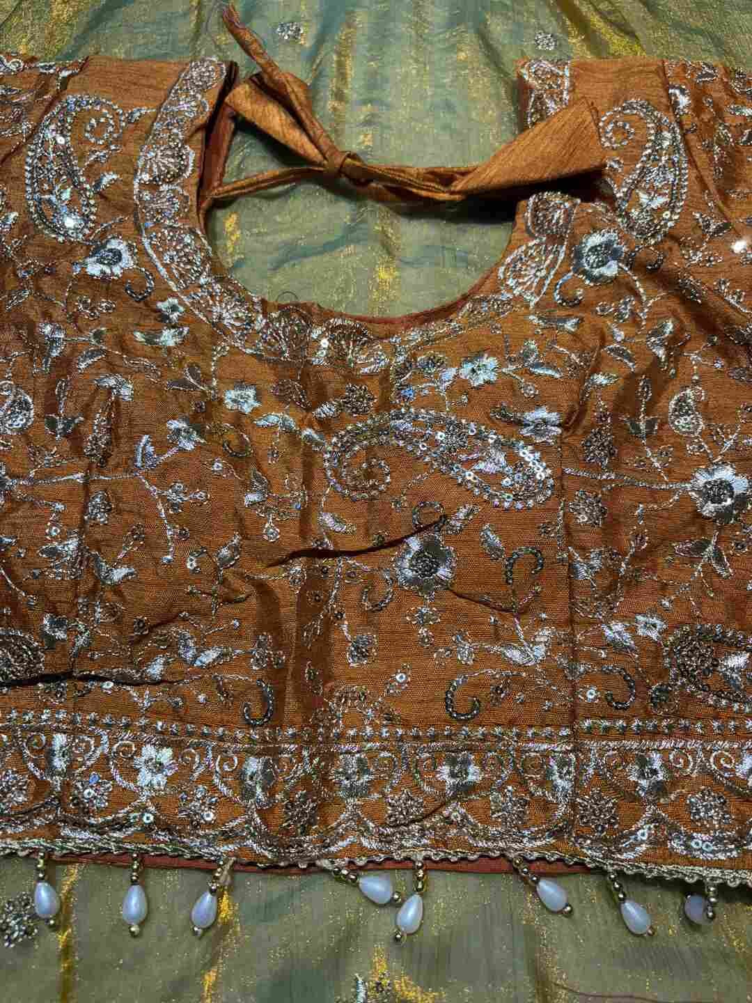 A stunning fusion of artistry: A beautifully crafted designer stitched blouse pairs seamlessly with the saree, creating a polished, elegant drape that feels stylish, convenient, and effortlessly luxurious.