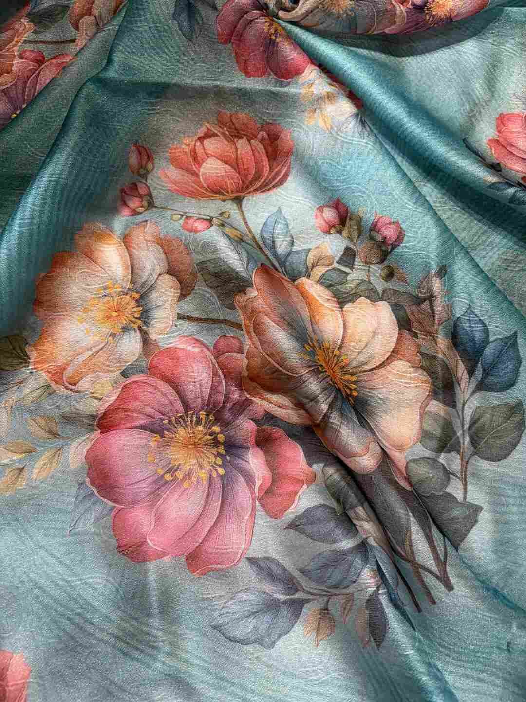 A stunning fusion of artistry: Soft Mello fabric is enhanced with elegant digital prints, creating a comfortable, lightweight drape perfect for regular wear that feels stylish, effortless, and gracefully modern.