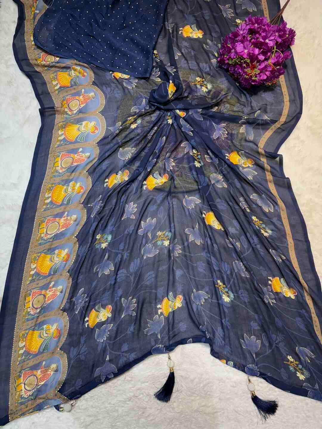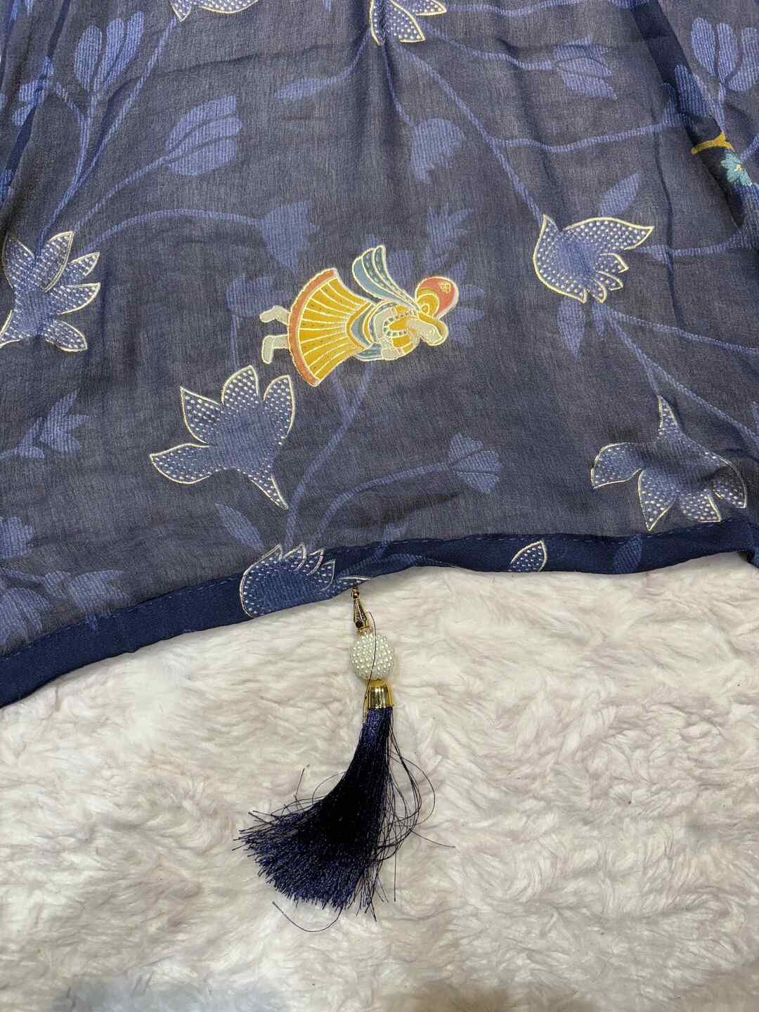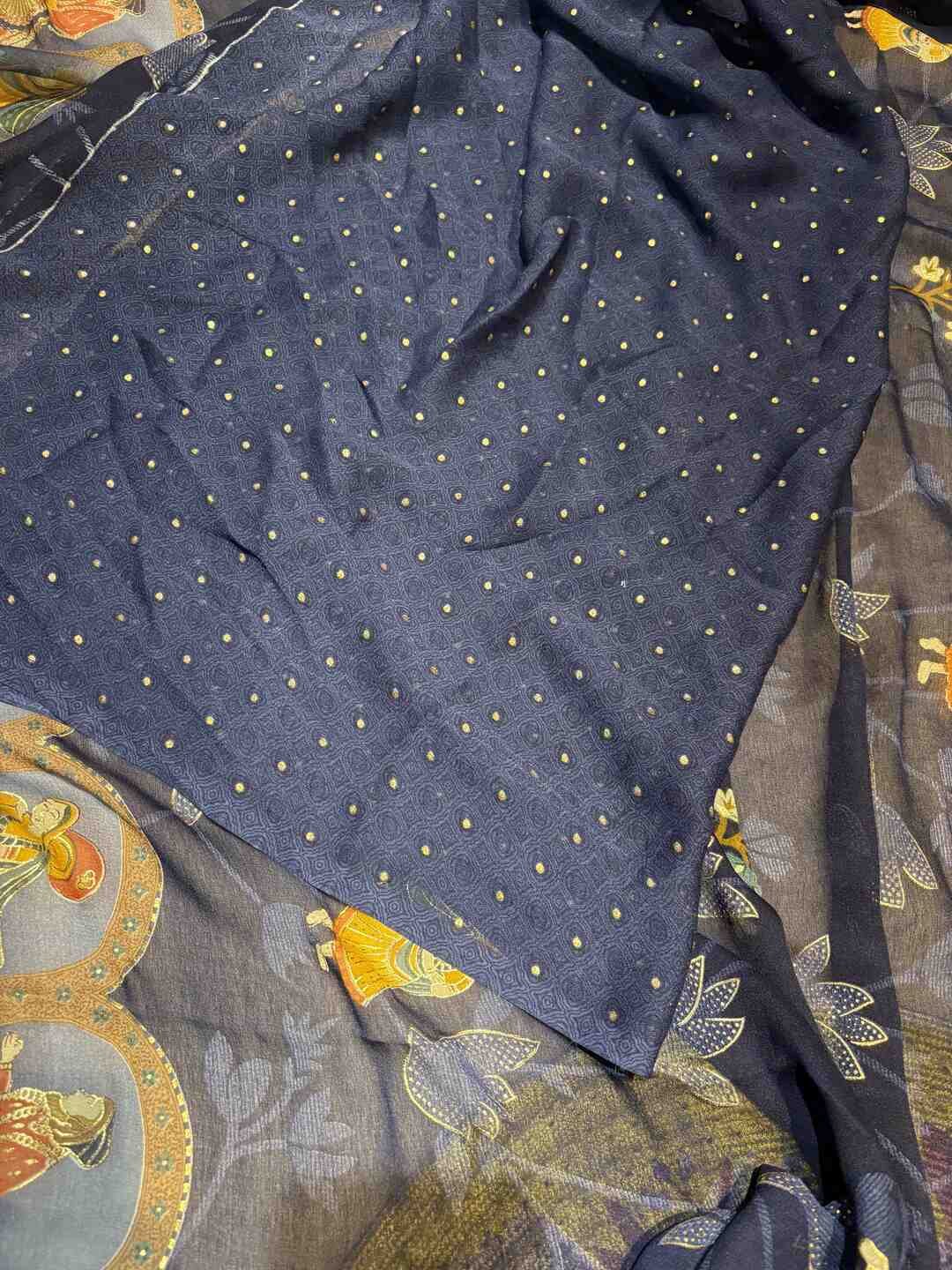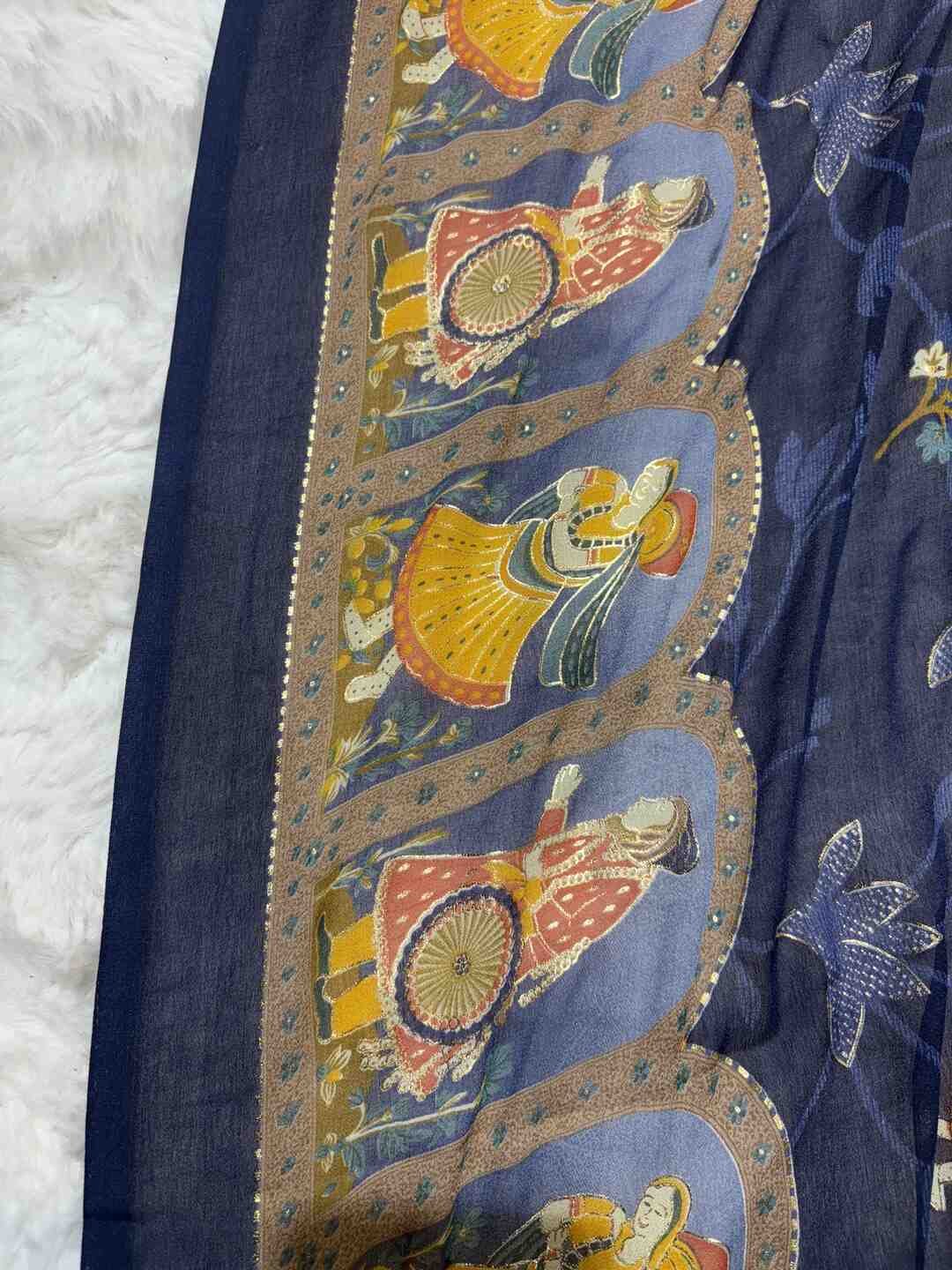 A stunning fusion of artistry: Contemporary figure digital prints come alive on soft Georgette fabric, creating a lightweight, flowy drape that feels modern, stylish, and effortlessly elegant.