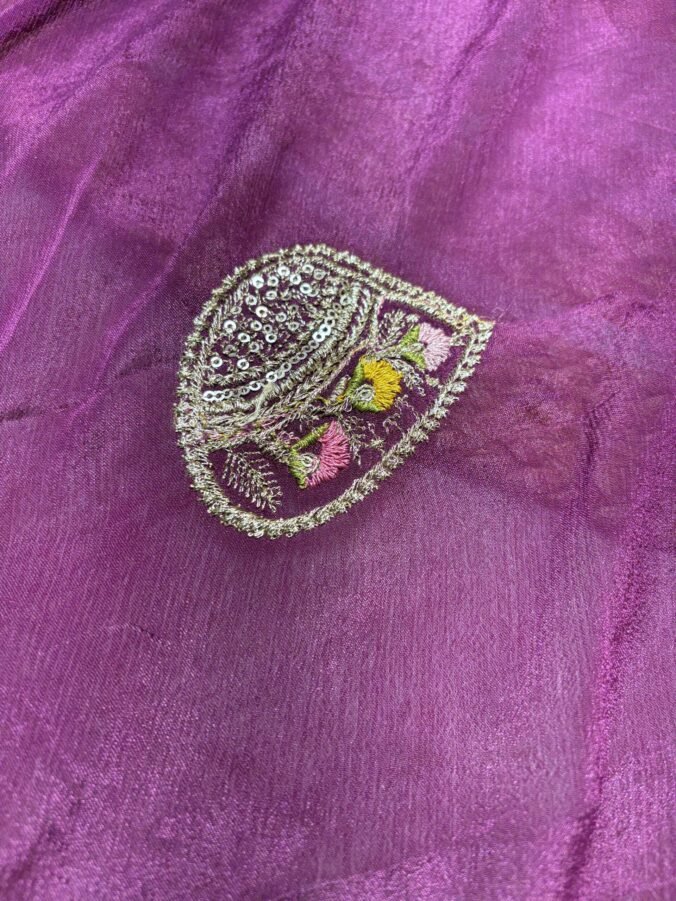 Heavy unstitched blouse with rich work—sequins, embroidery, or designer patterns (design may vary)