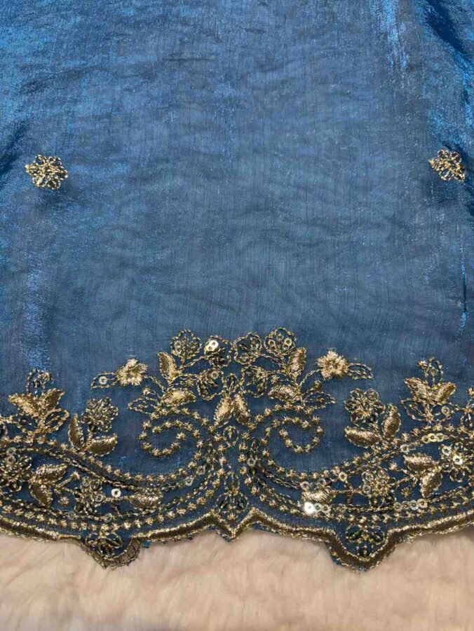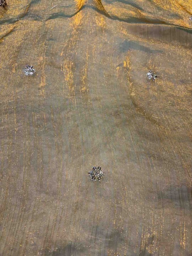 Perfect for College Events, Sangeet Ceremonies, Festive Day Parties, Young Adults’ Receptions, and Casual Social Gatherings. The best styling combines the saree’s light elegance with the blouse’s heavy structure: opt for a trending blouse cut (like a halter, deep V, or backless design), minimal contemporary jewellery (e.g., dainty earrings, chic bangles), and comfortable yet stylish footwear.