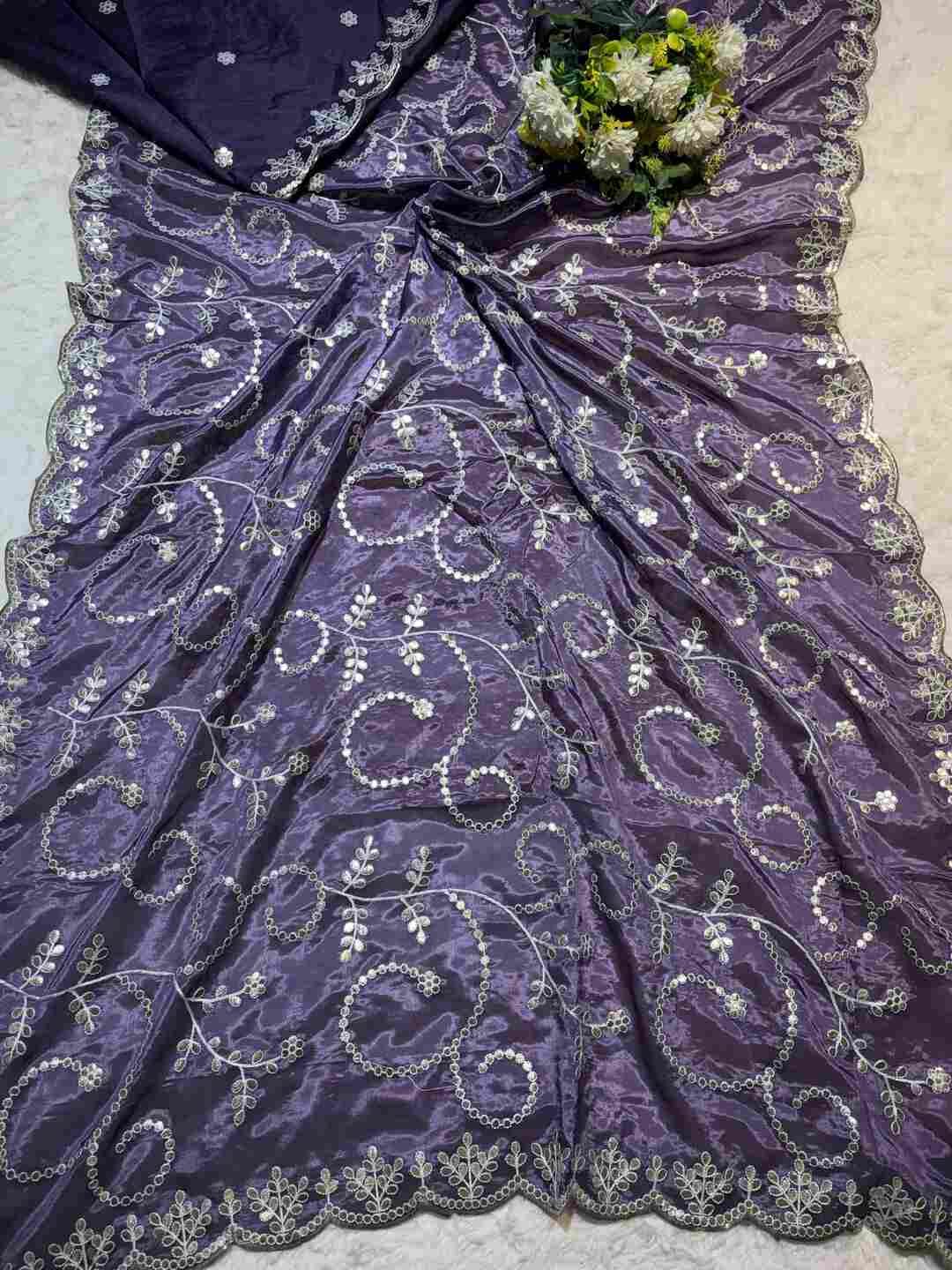 A stunning fusion of artistry: Rich Gota Patti detailing paired with all-over Zaal work enhances the soft Silk fabric, creating a luxurious, festive drape that feels regal, graceful, and effortlessly stunning.