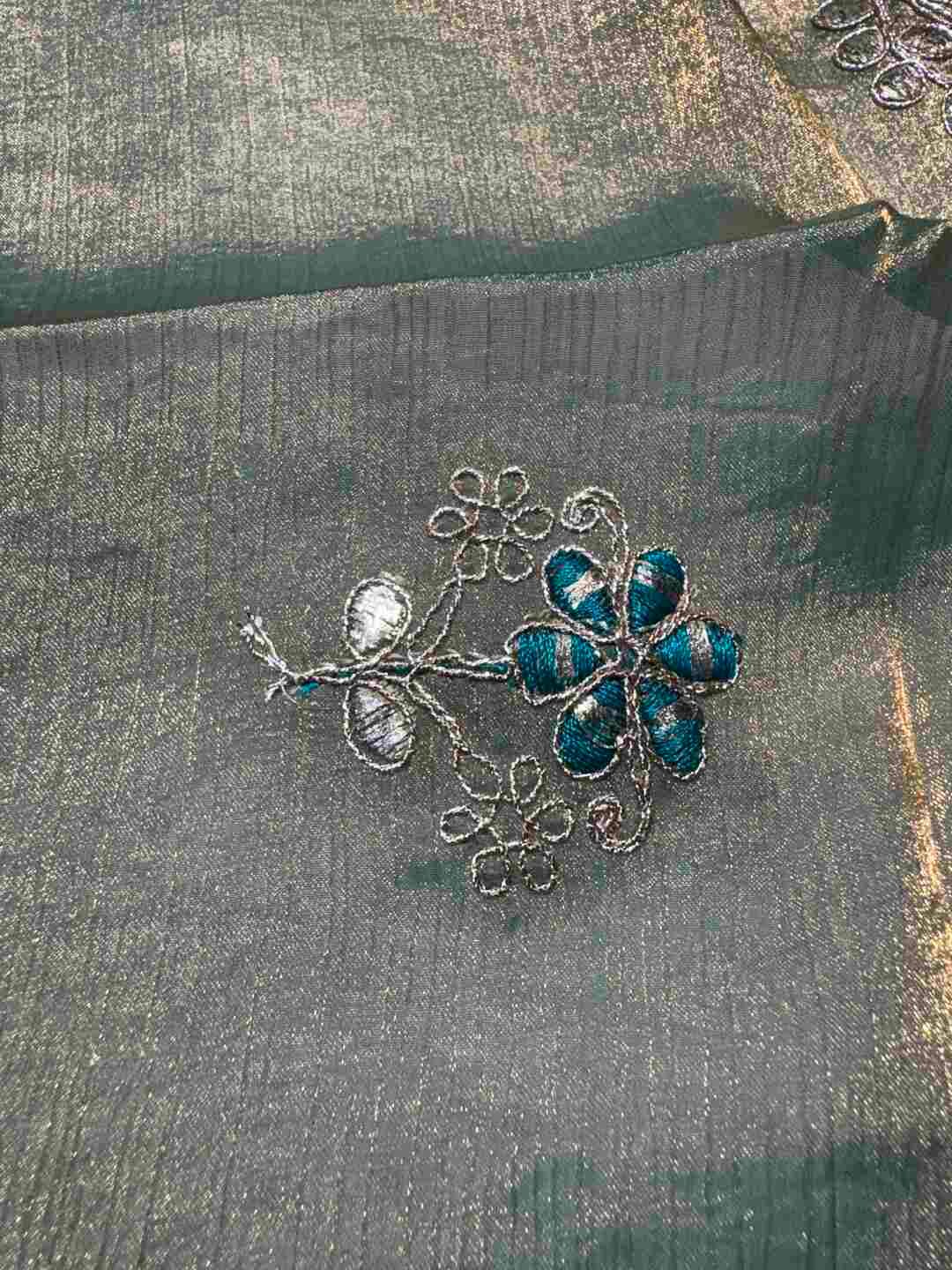 Hand-applied Gotapatti motifs crafted with precision