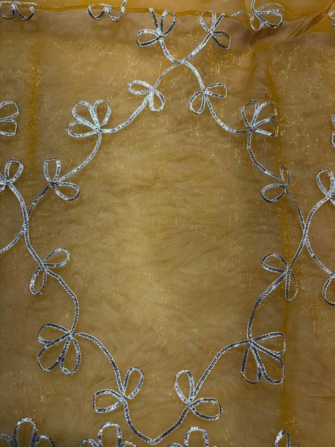 A stunning fusion of artistry: Delicate Gota Patti work enhances the soft, flowy Chiffon fabric, creating a lightweight, graceful drape that feels festive, elegant, and effortlessly luxurious.