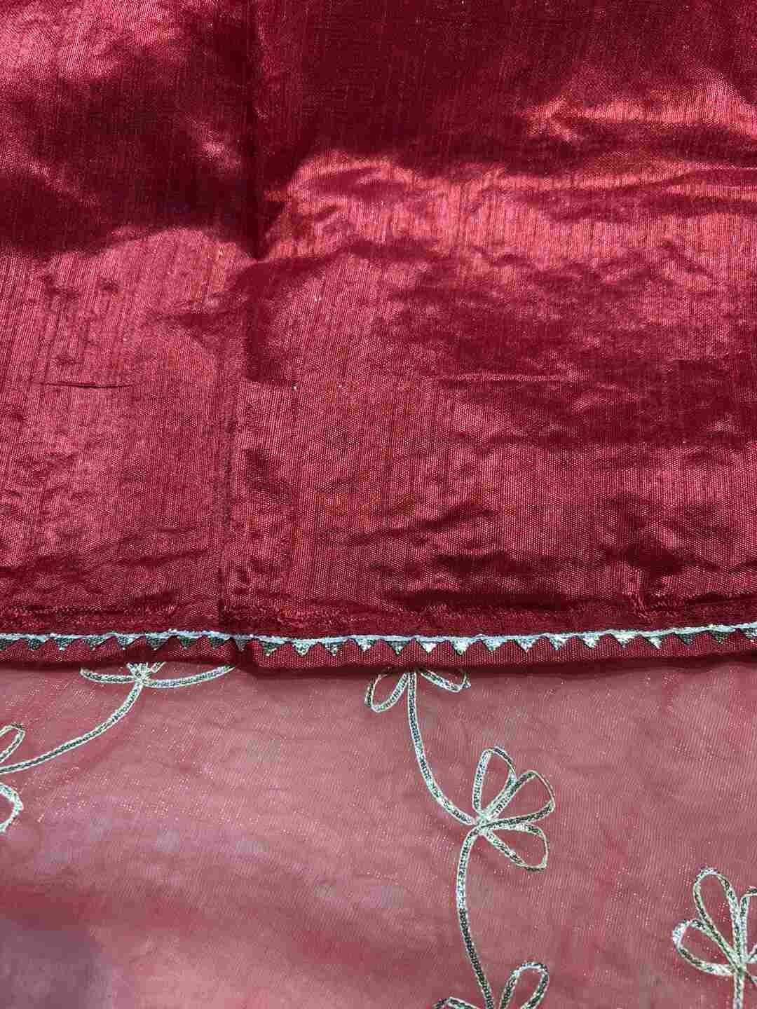 A stunning fusion of artistry: Delicate Gota Patti work enhances the soft, flowy Chiffon fabric, creating a lightweight, graceful drape that feels festive, elegant, and effortlessly luxurious.