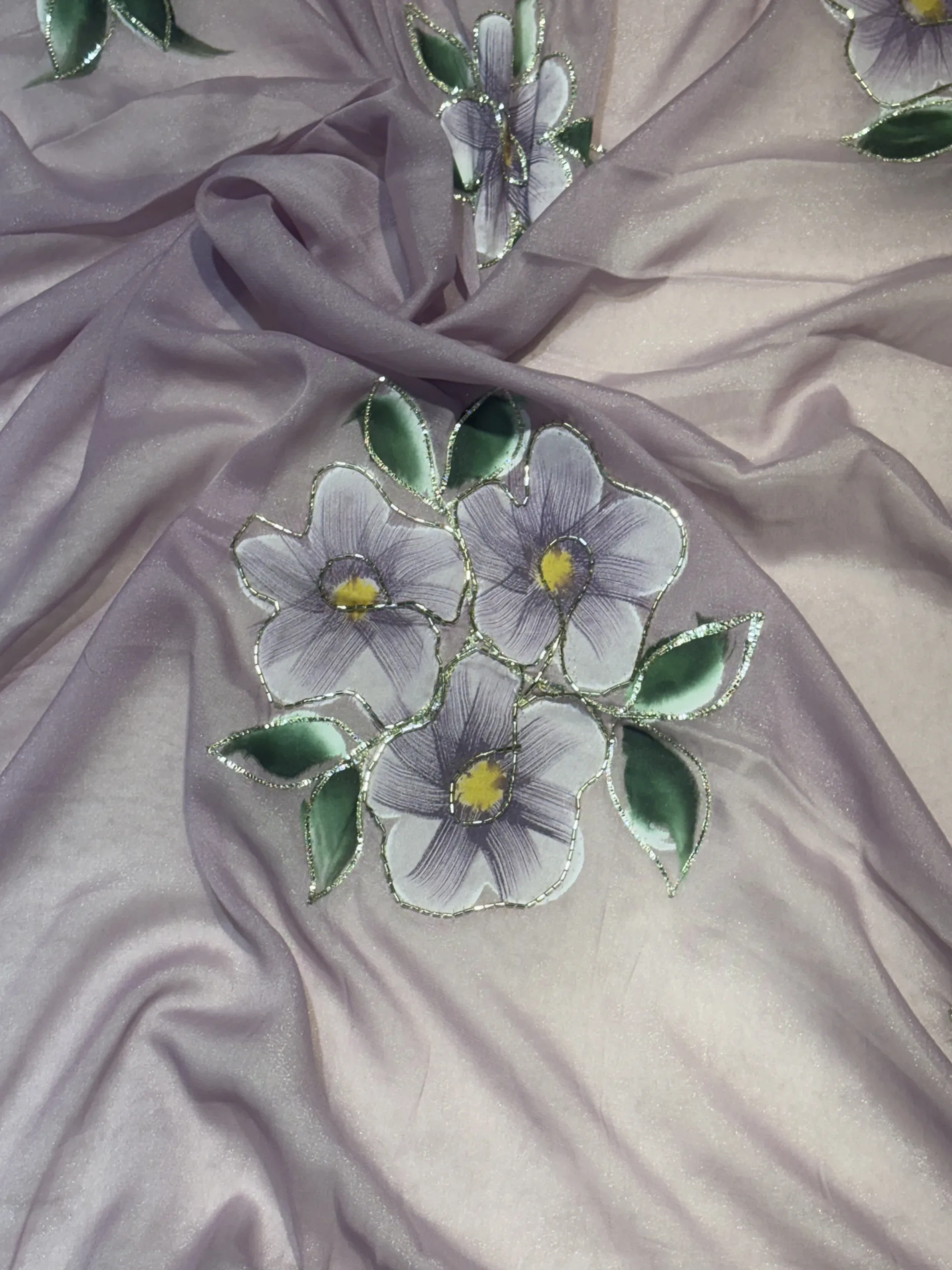 A stunning fusion of artistry: Graceful hand-painted designs come alive on soft Georgette fabric, offering a lightweight, flowy drape that feels artistic, elegant, and beautifully contemporary.