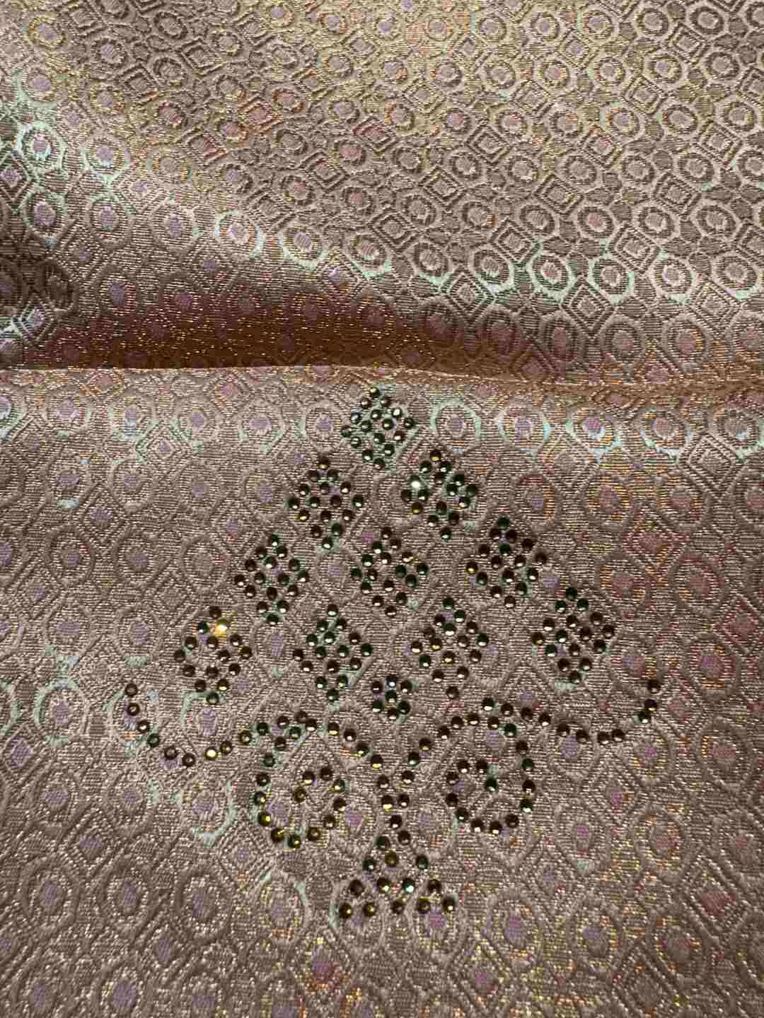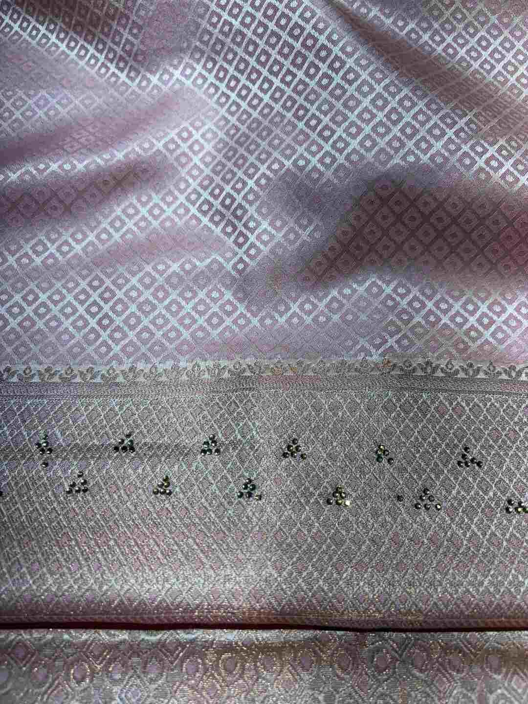This saree features the classic Kanjivaram weaving style, enhanced with diamond work all over, giving it a sparkling and luxurious finish.