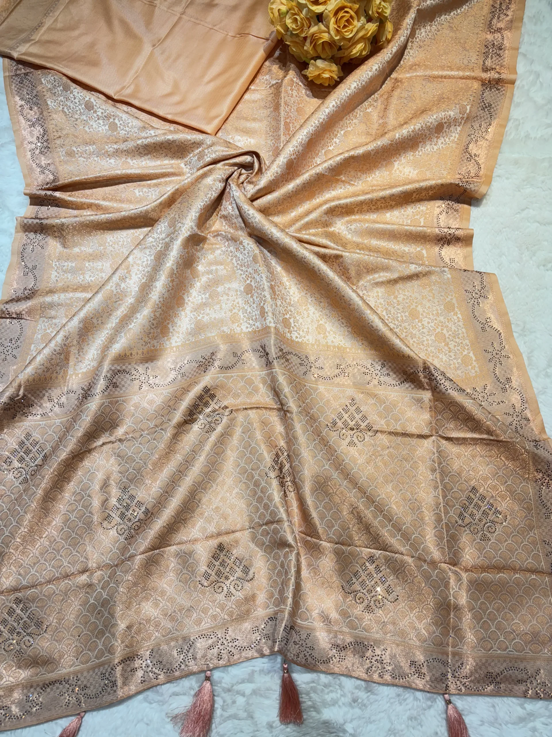 Due to the combination of zari weaving and diamond embellishments: