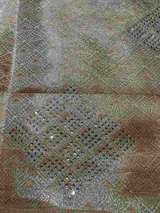 A stunning fusion of artistry: Exquisite hand-painted motifs bloom gracefully on soft Tissue fabric, offering a lightweight, shimmering drape that feels uniquely artistic, modern, and luxuriously elegant.
