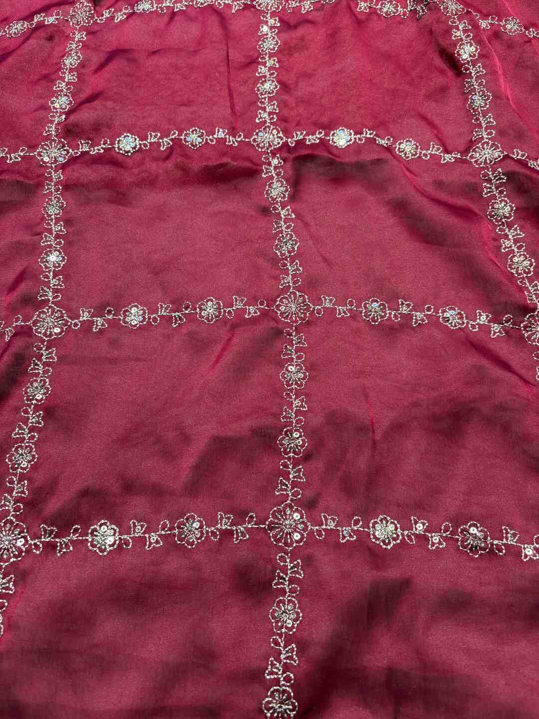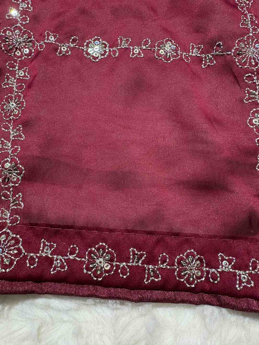 This saree features intricate Kasida Work, adding depth and elegance to the overall design.