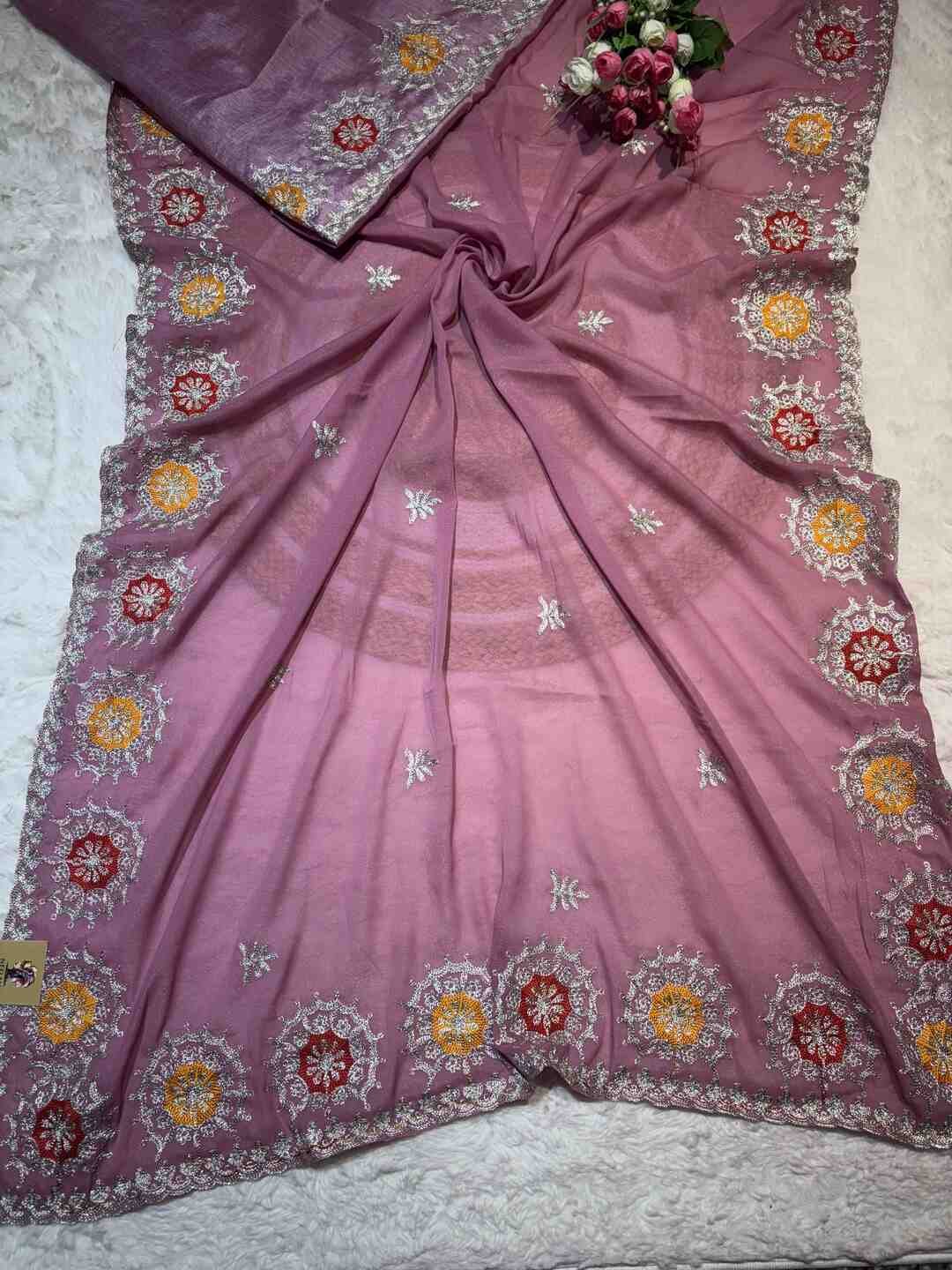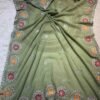 A stunning fusion of artistry: Intricate Kasida work highlighted with vibrant colour thread detailing enhances the soft Georgette fabric, creating a graceful, festive drape that feels elegant, expressive, and effortlessly luxurious.