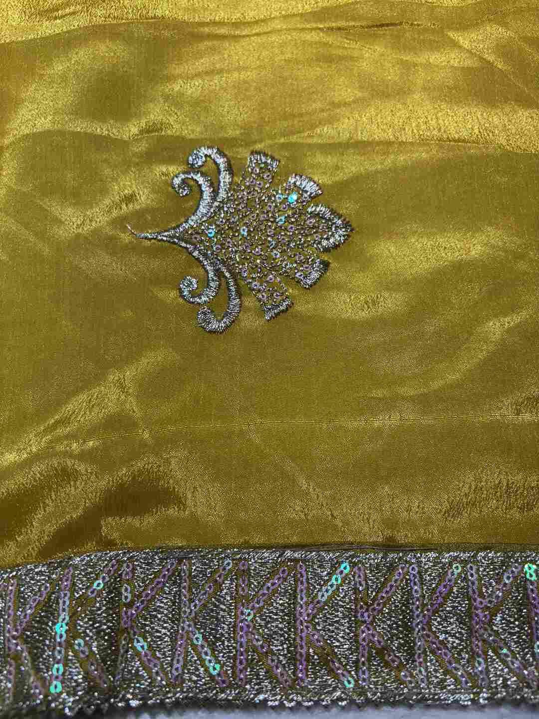 A stunning fusion of artistry: A fresh new border and elegant new butta design enhance the soft Chinon fabric, creating a graceful, trendy drape that feels modern, festive, and effortlessly luxurious.