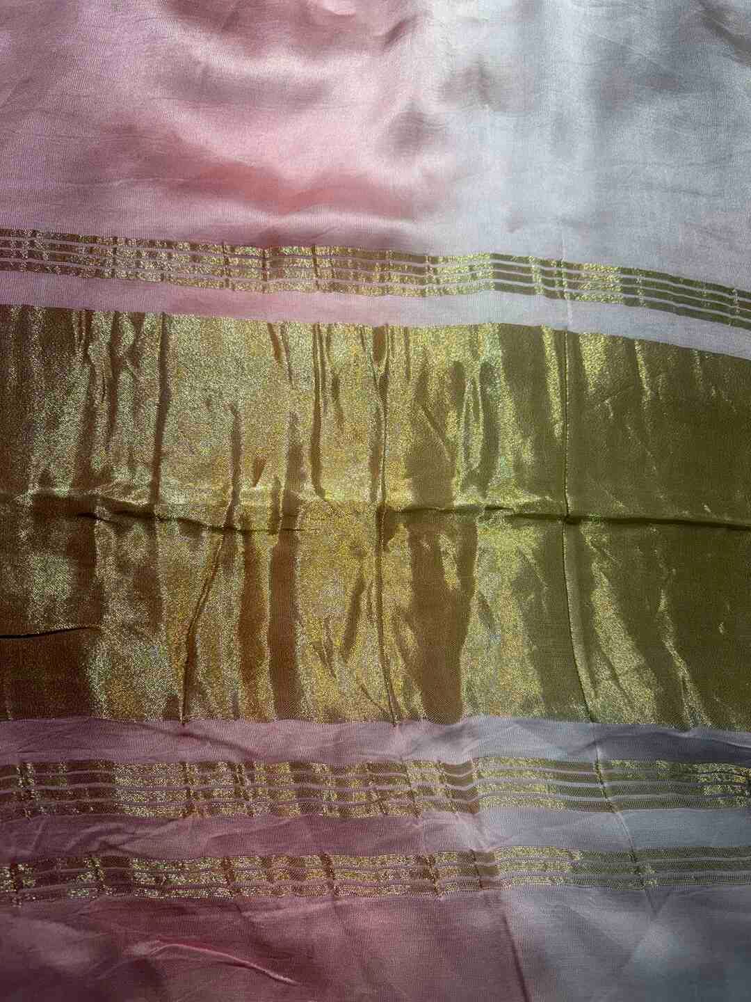 A stunning fusion of artistry: Luxurious Gaji Silk is refreshed with the latest tie-and-dye concept, creating a vibrant, graceful drape that feels traditional, trendy, and effortlessly elegant.