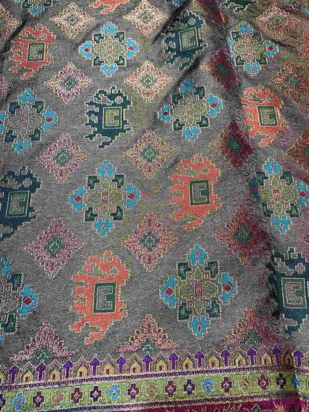 A stunning fusion of artistry: The richness of original Pashmina unfolds in a warm, luxurious drape, offering timeless elegance with a soft, regal feel that is perfect for refined, high-fashion styling.