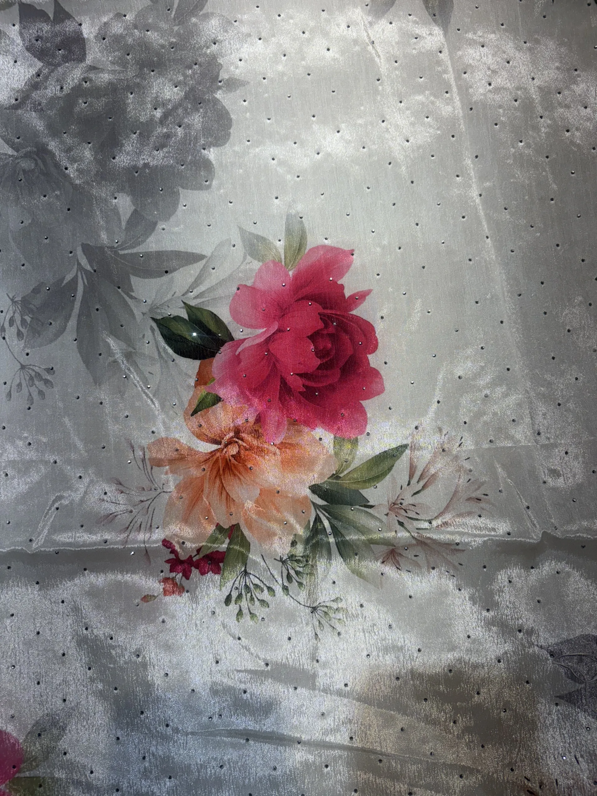 A stunning fusion of artistry: A trendy partywear girlish saree designed with modern flair, offering a lightweight, fashionable drape that feels youthful, chic, and effortlessly glamorous.