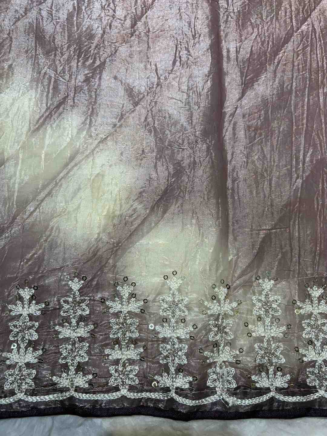 Fine thread embroidery spread across the saree