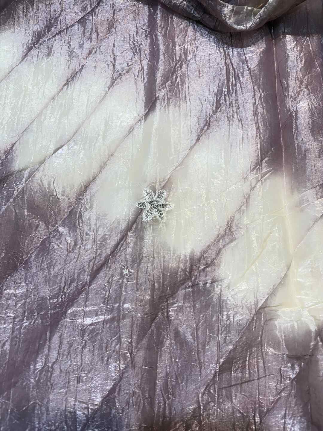 A stunning fusion of artistry: The contemporary Shibori dye concept is beautifully highlighted with intricate all-over thread work, creating a stylish, expressive drape that feels modern, elegant, and effortlessly luxurious.