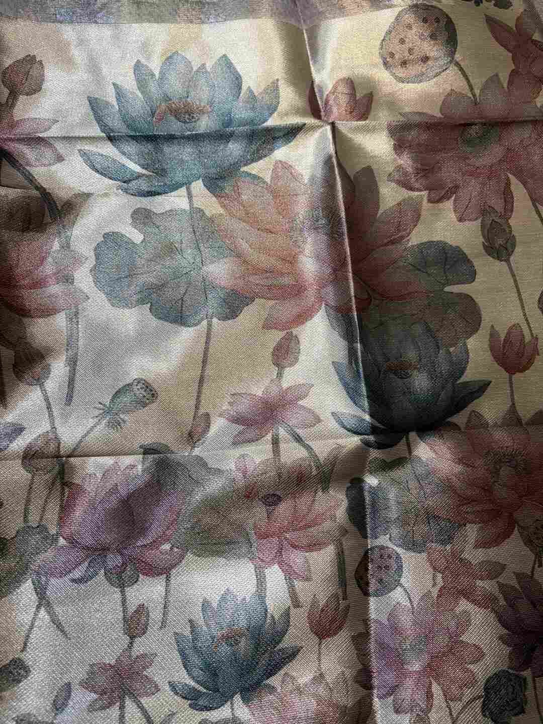 The tissue fabric adds a luxurious glow, making the digital prints stand out beautifully.