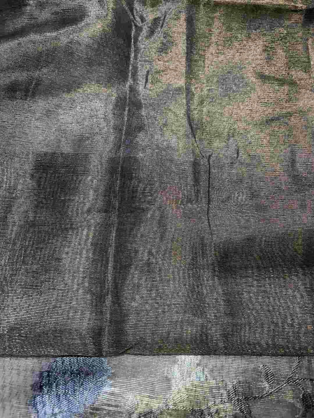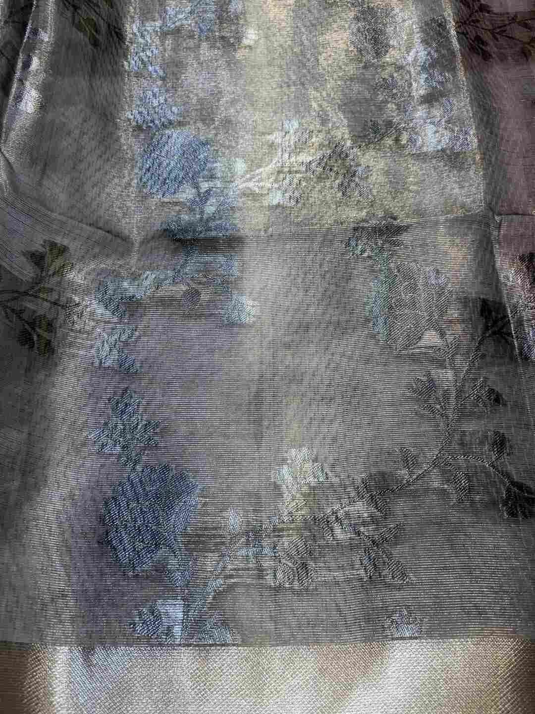 A stunning fusion of artistry: Shimmering Tissue fabric is beautifully adorned with all-over digital print, creating a lightweight, radiant drape that feels modern, stylish, and effortlessly elegant.