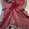 This exclusive saree from NEELAM TRADERS’ new launch is a stunning fusion of cultural vibrancy and luxurious hand-embellishment. The authentic Traditional Bandhej tie-dye is dramatically elevated by a breathtaking mantle of All Over Karadana Work, creating a show-stopping garment perfect for high-impact evening events.