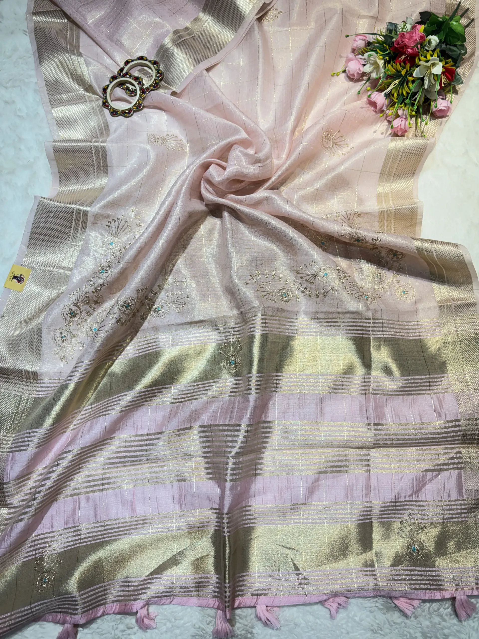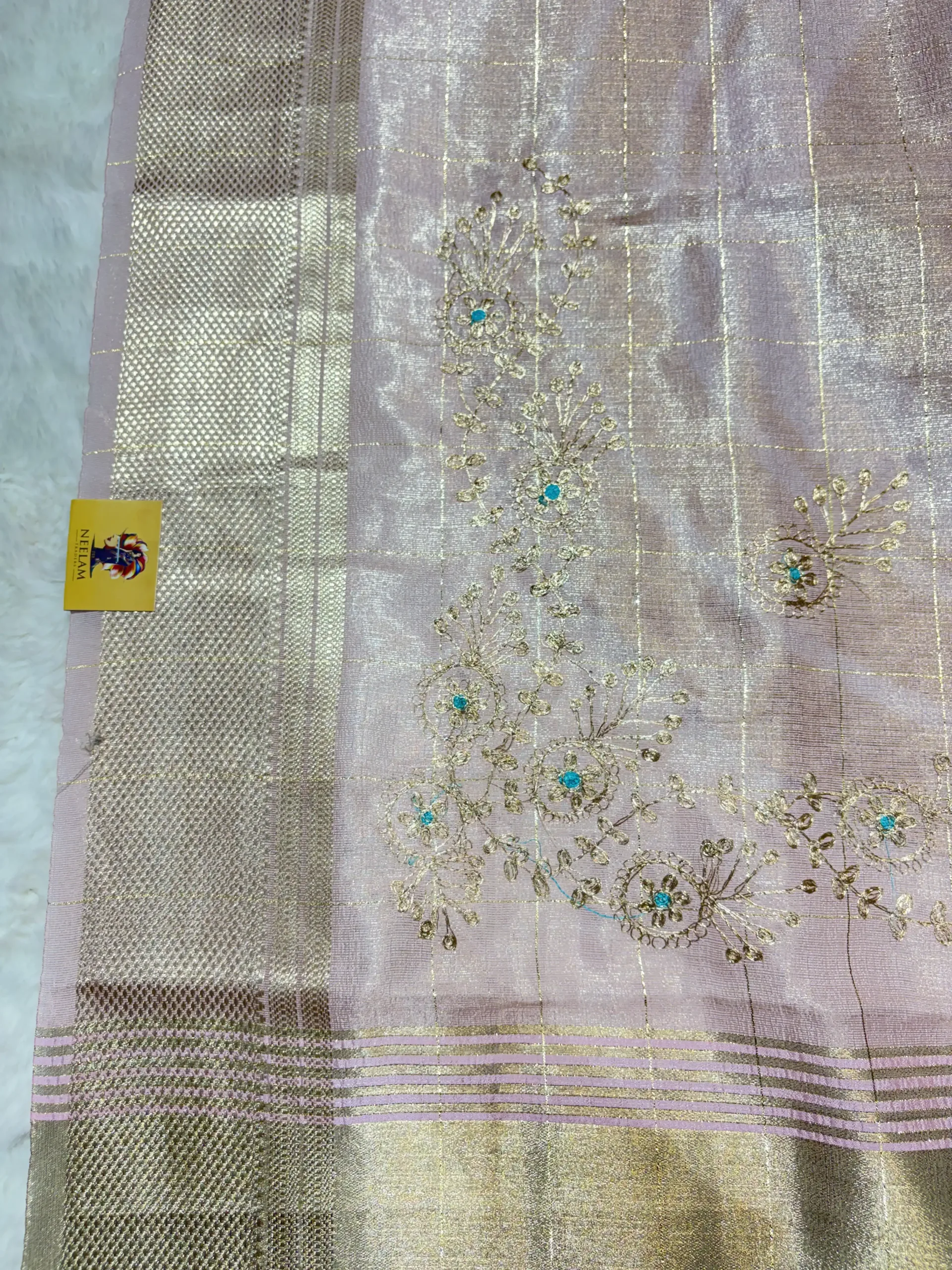 This saree features elegant Pithan work all over, adding a traditional handcrafted touch.
