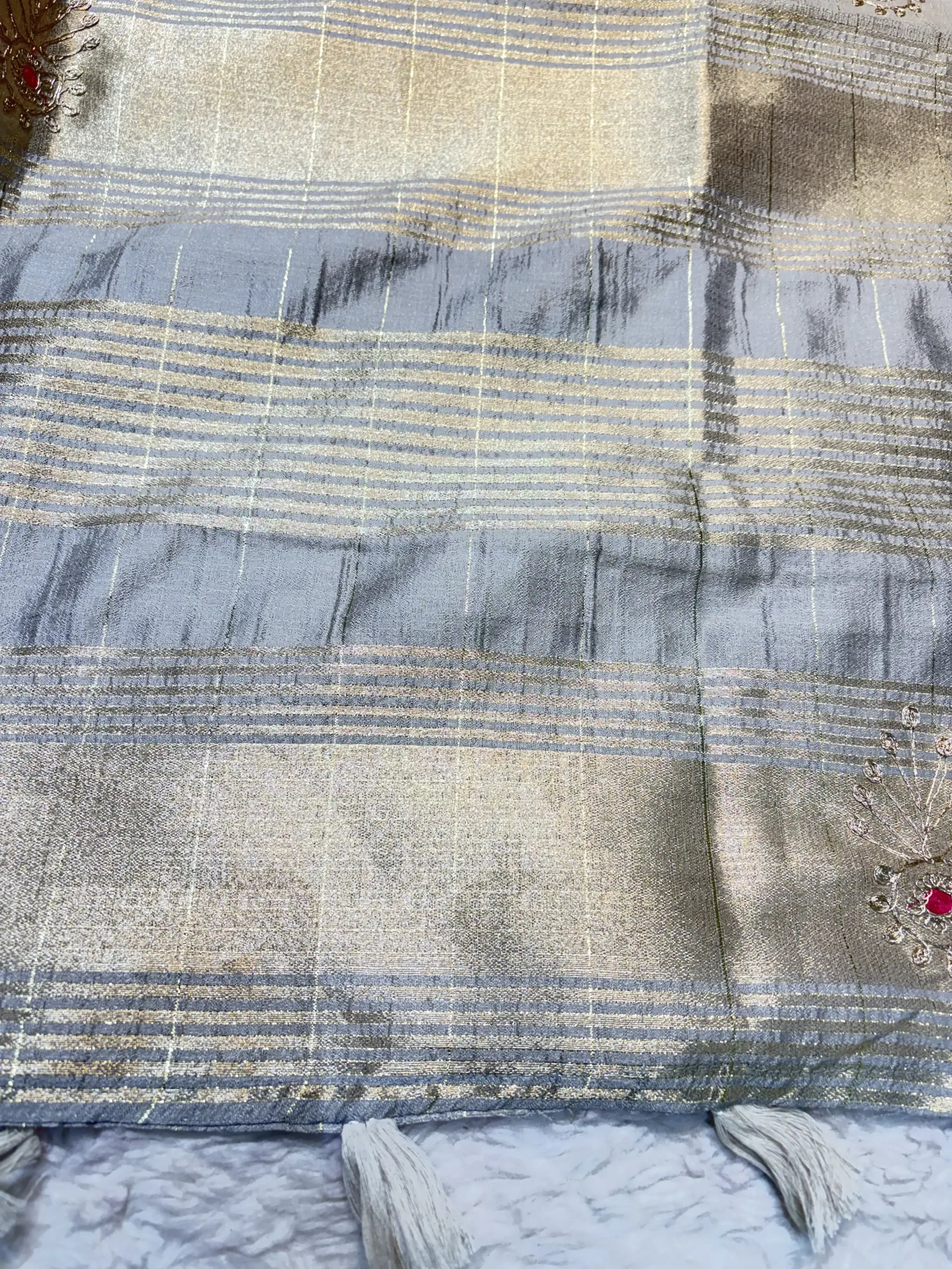Be the first to review “NEELAM TRADERS NEW LAUNCH TRENDING Budget friendly saree in Cotton Silk Fabric with pithan work all over GRAY”