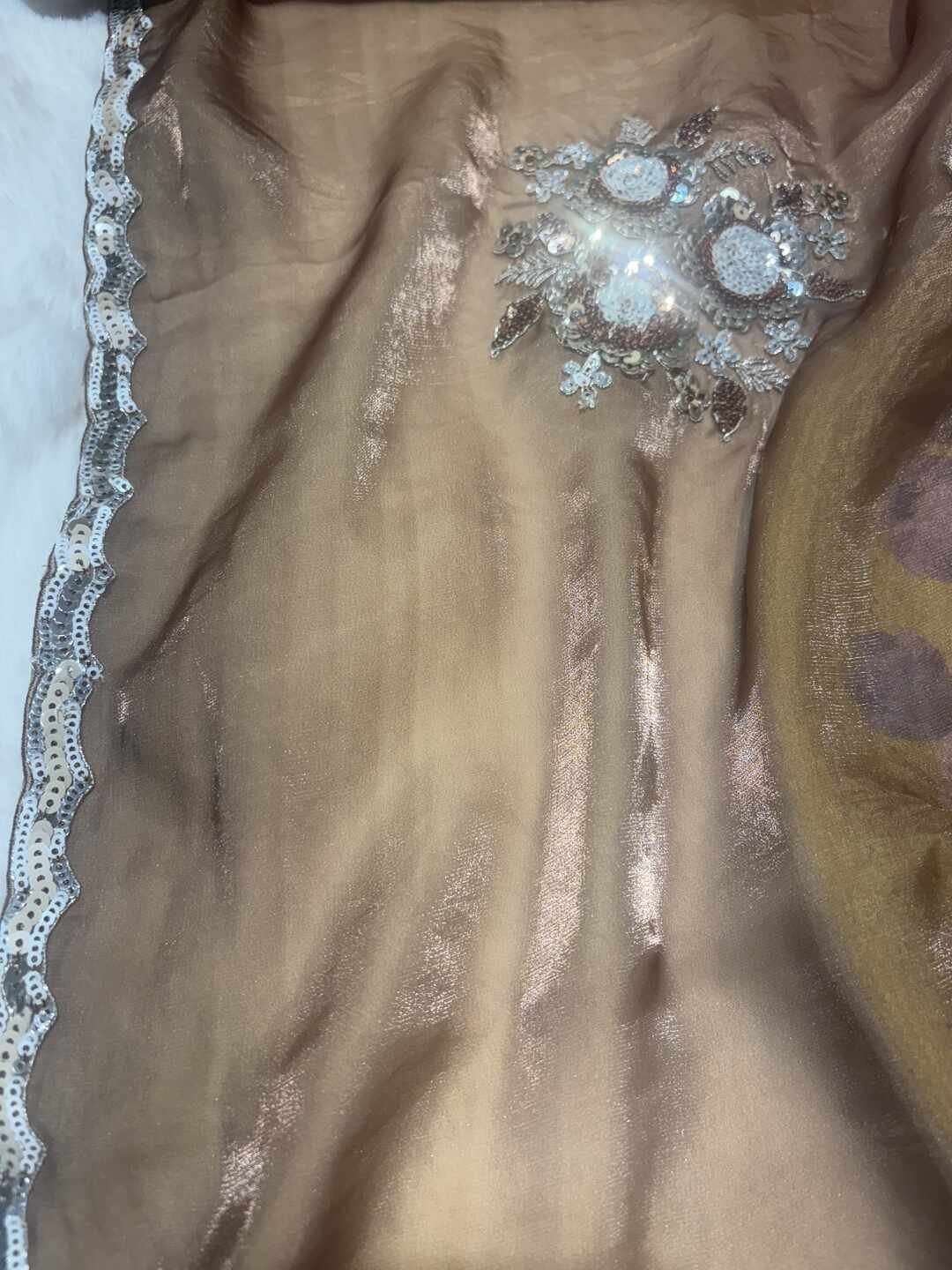 This saree showcases a solid trending coffee colour base, elevated with a stylish designer blouse.