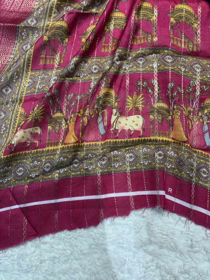 This elegant new launch from NEELAM TRADERS presents a beautiful Unstitched Aangi Blouse Saree, crafted in luxurious Pure Tussar Silk fabric. Inspired by traditional Rajasthani styling and enhanced with the richness of silk, this saree is perfect for women who love customizing their ethnic wear with a royal and cultural touch.