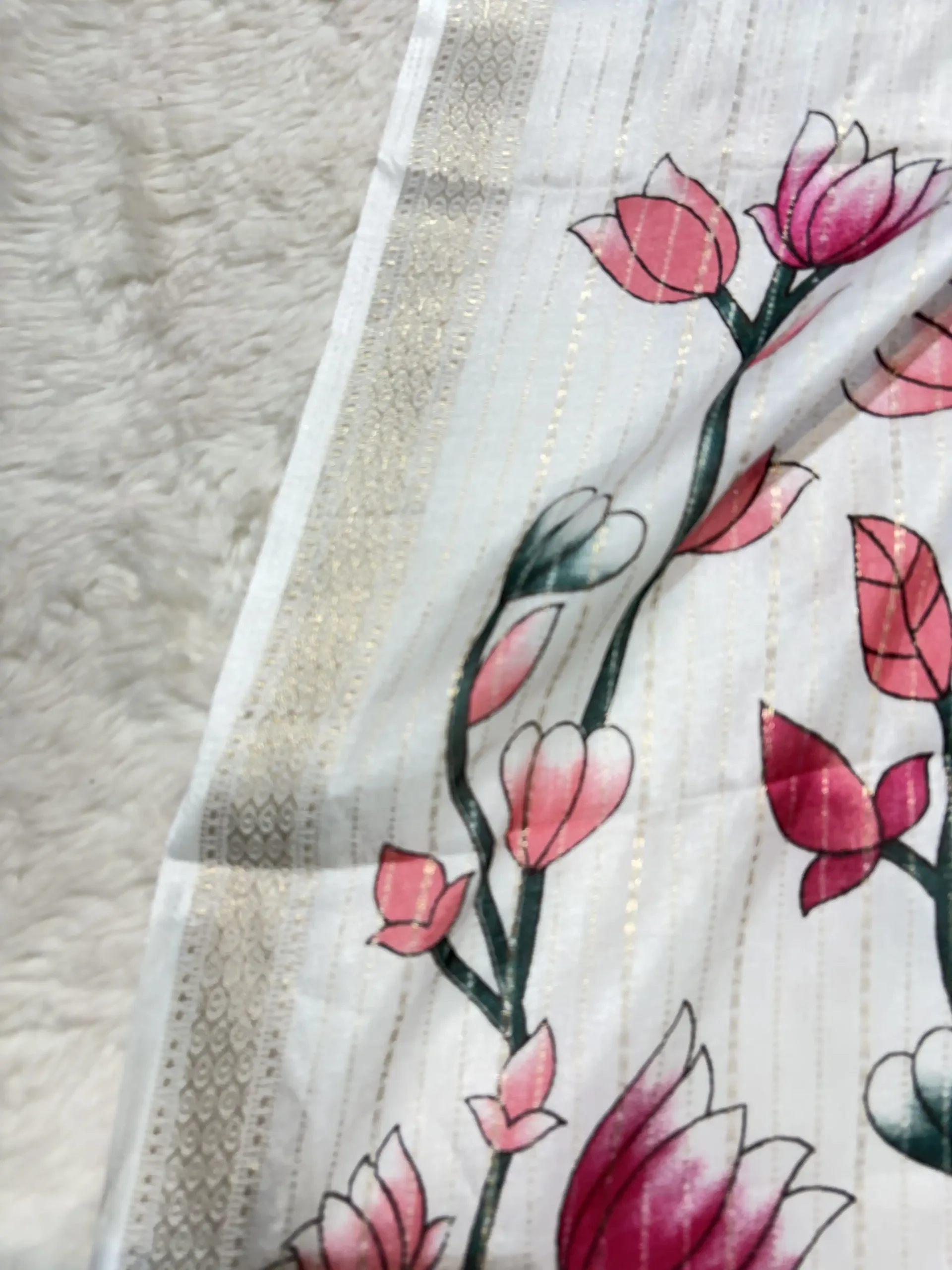 Be the first to review “NEELAM TRADERS NEW LAUNCH TRENDING Latest blue and white combination saree with kalamari print all over”