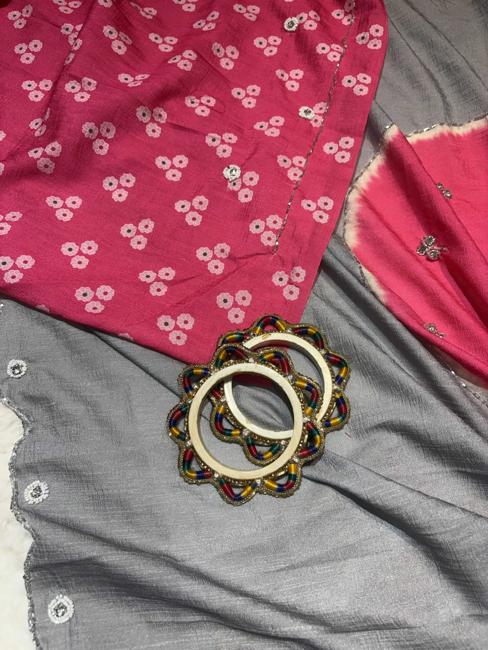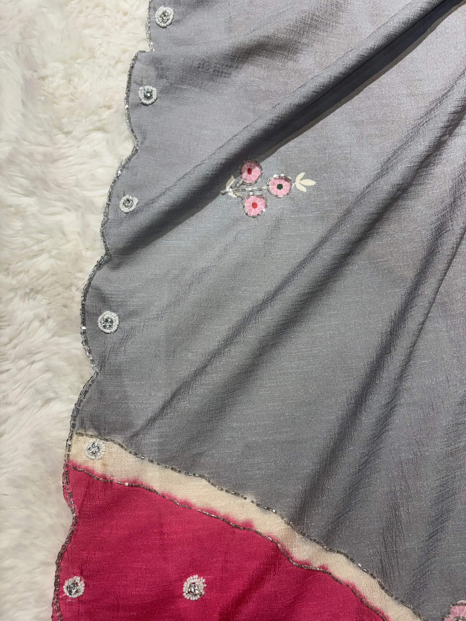 👑 NEELAM TRADERS NEW LAUNCH: Trending Latest designer saree in gray and pink combination with handwork all over ✨👑🥻