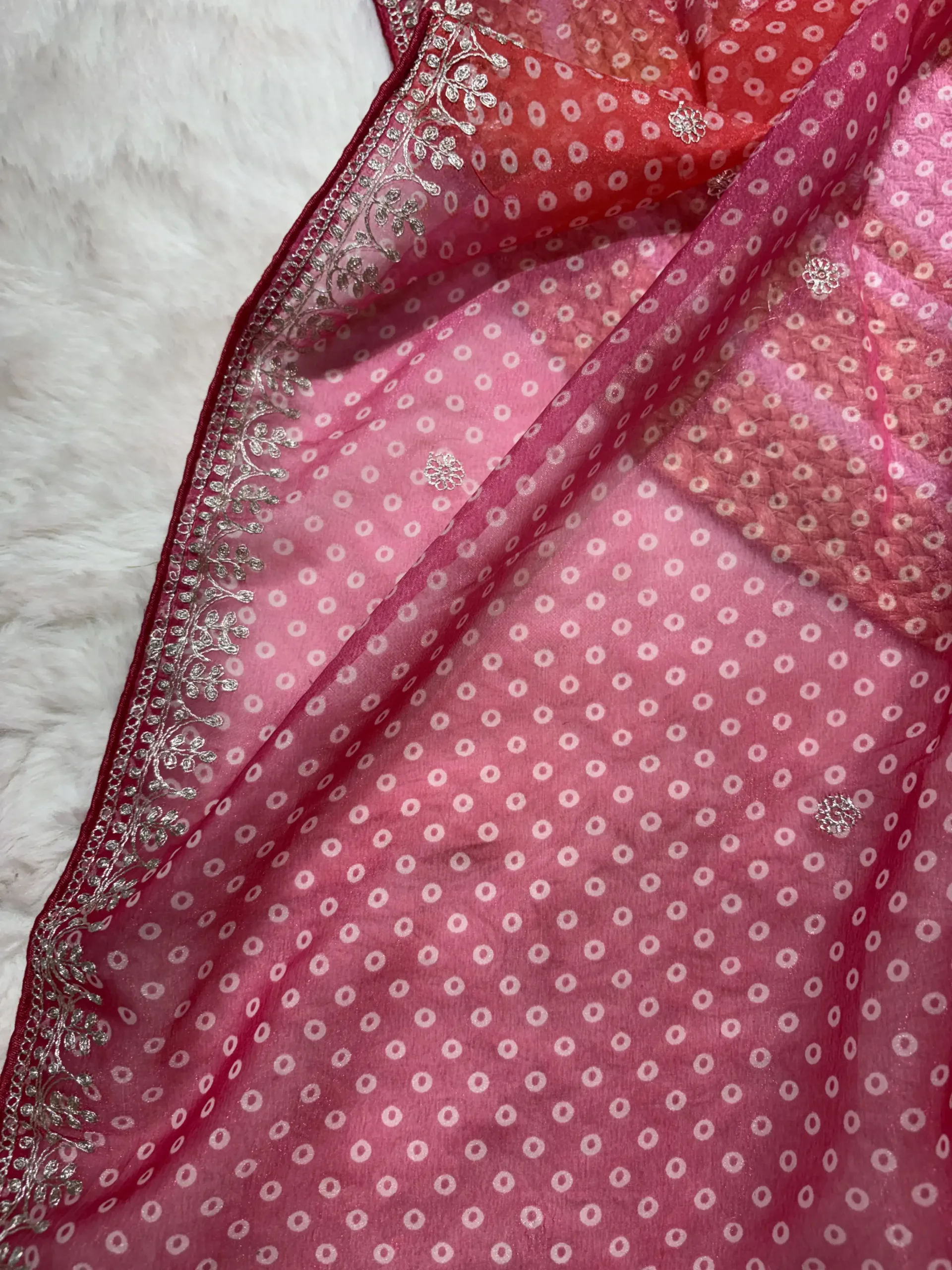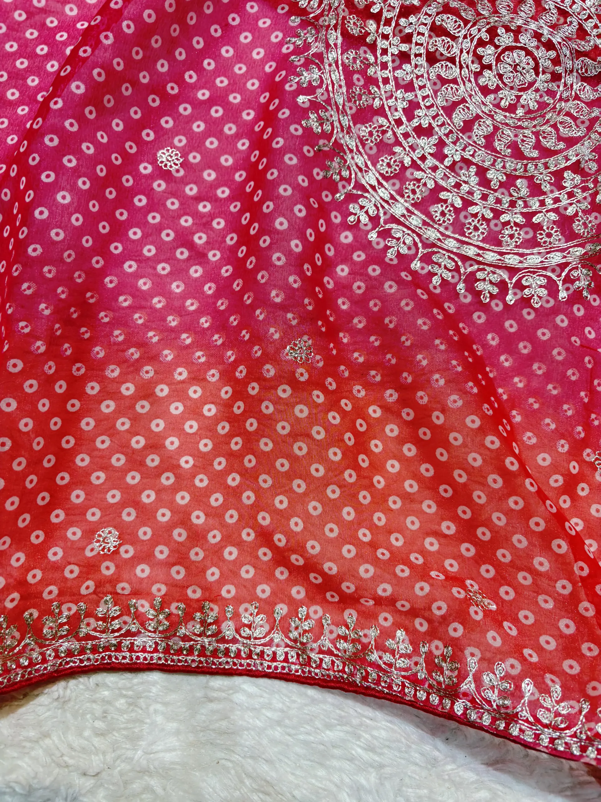 Be the first to review “NEELAM TRADERS NEW LAUNCH TRENDING multicolour shade bandhej saree with trending pithan work all over”