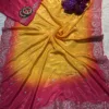 This saree features a traditional Aangi blouse concept, provided in an unstitched format for customized styling.
