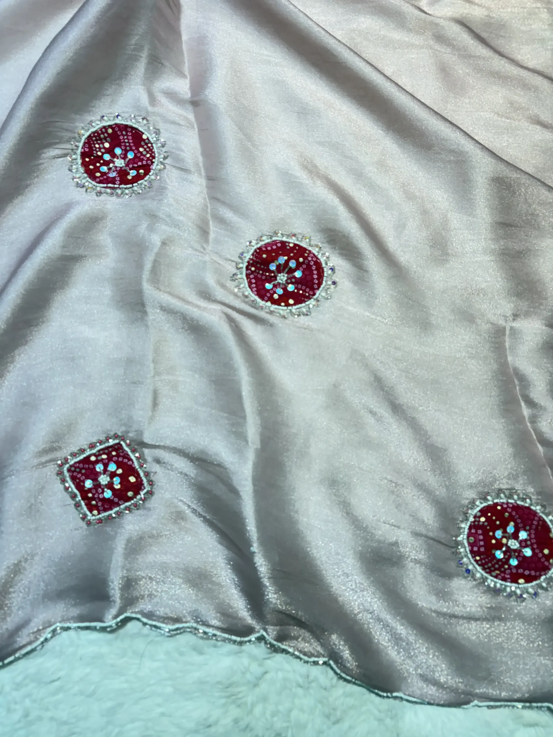 This stylish new launch from NEELAM TRADERS presents a beautiful Partywear Saree, enhanced with elegant Bandhej Patch Work and paired with a matching Bandhej Blouse. Blending modern party styling with traditional Bandhej craftsmanship, this saree offers a perfect festive look that is both vibrant and culturally rich.