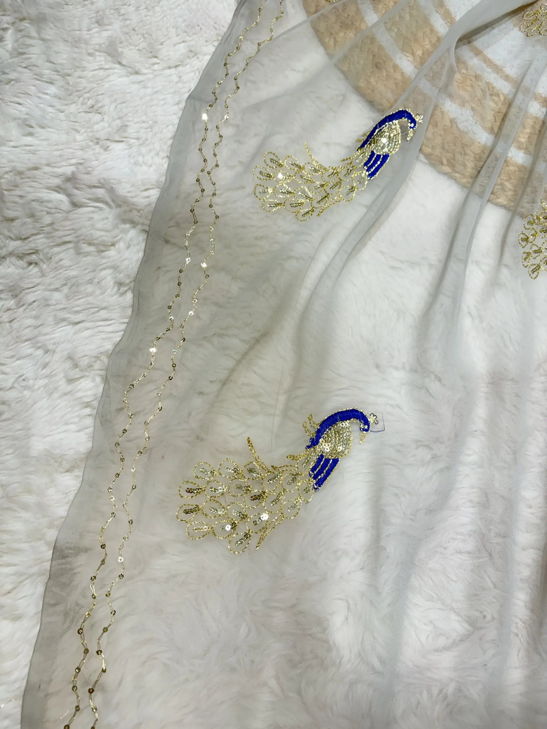 👑 NEELAM TRADERS NEW LAUNCH: Trending Peacock Work Saree Without Blouse In Soft Chiffon Fabric ✨👑🥻