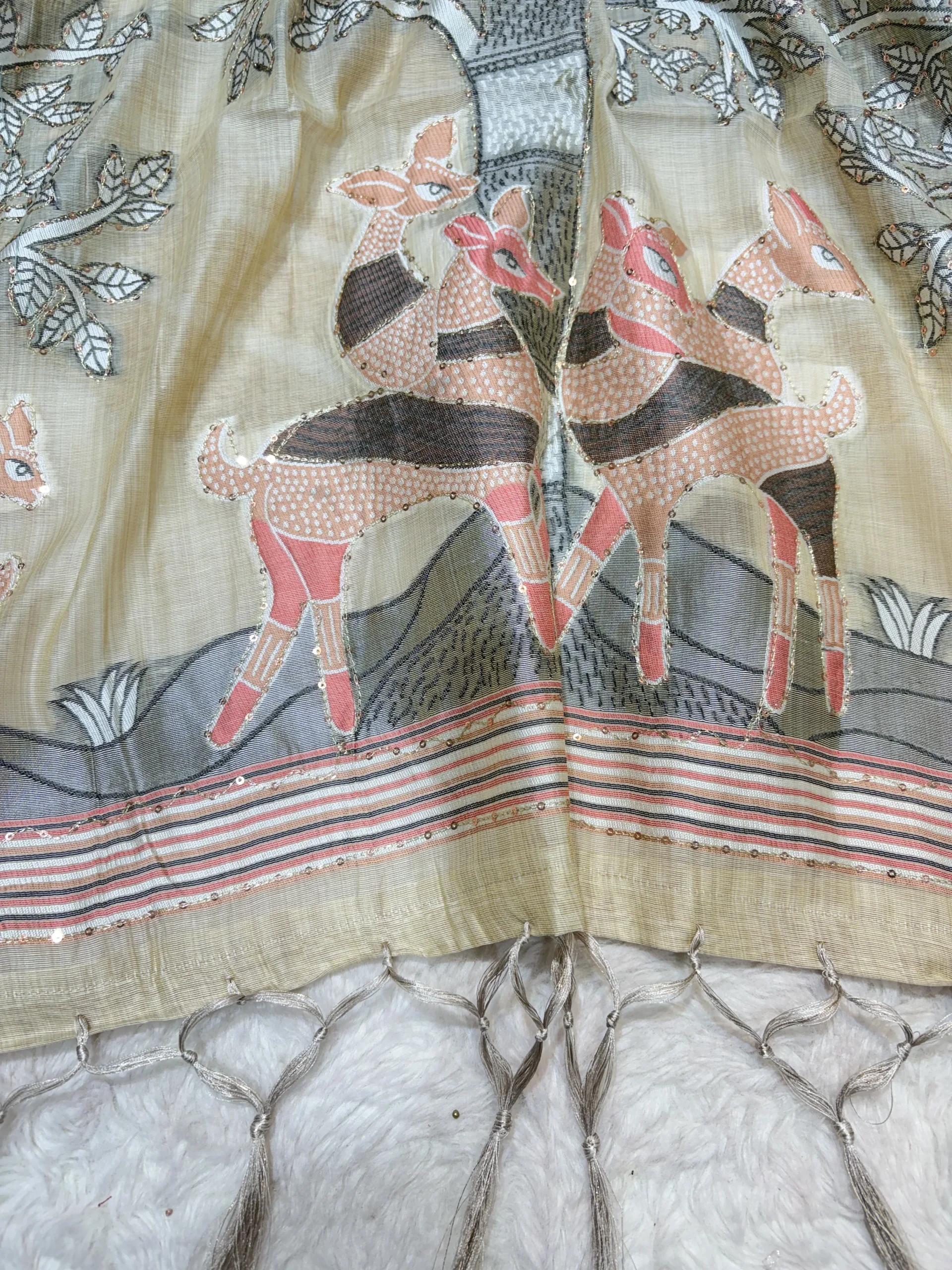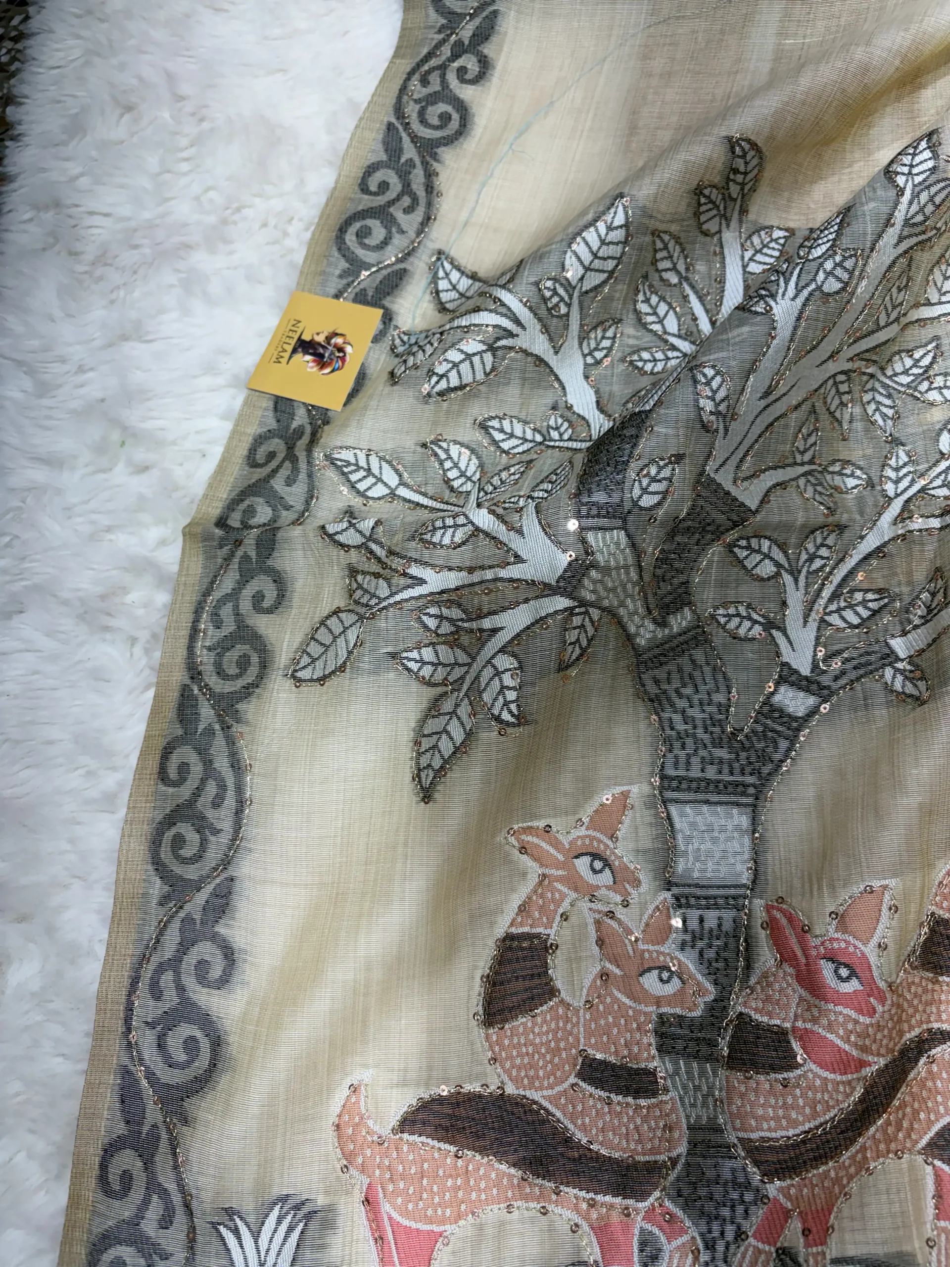 Tussar silk adds a natural elegance and heritage feel to the saree.