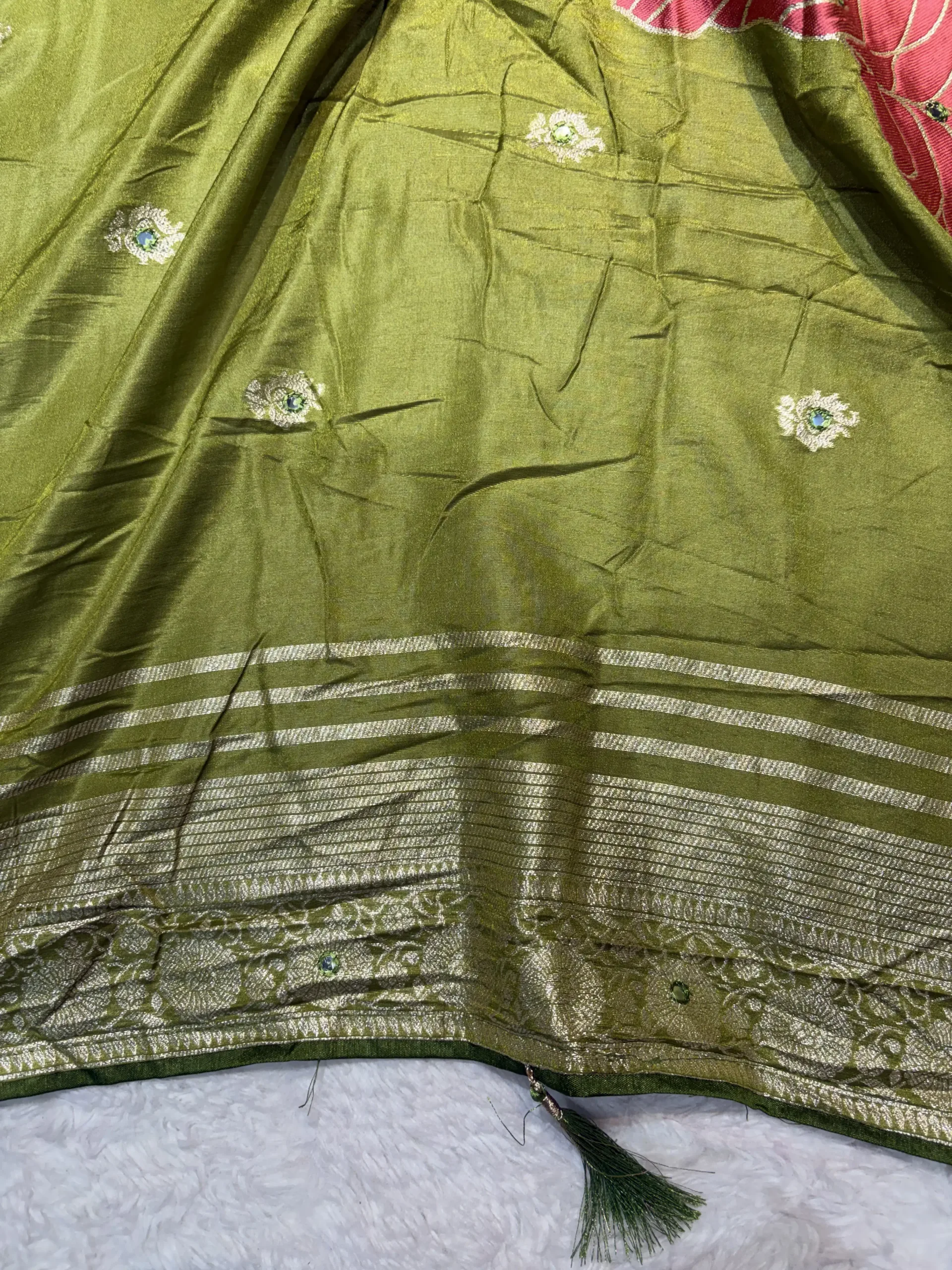 👑 NEELAM TRADERS NEW LAUNCH: Trending viral banarasi zari saree in dola silk fabric with mirror work all over✨👑🥻