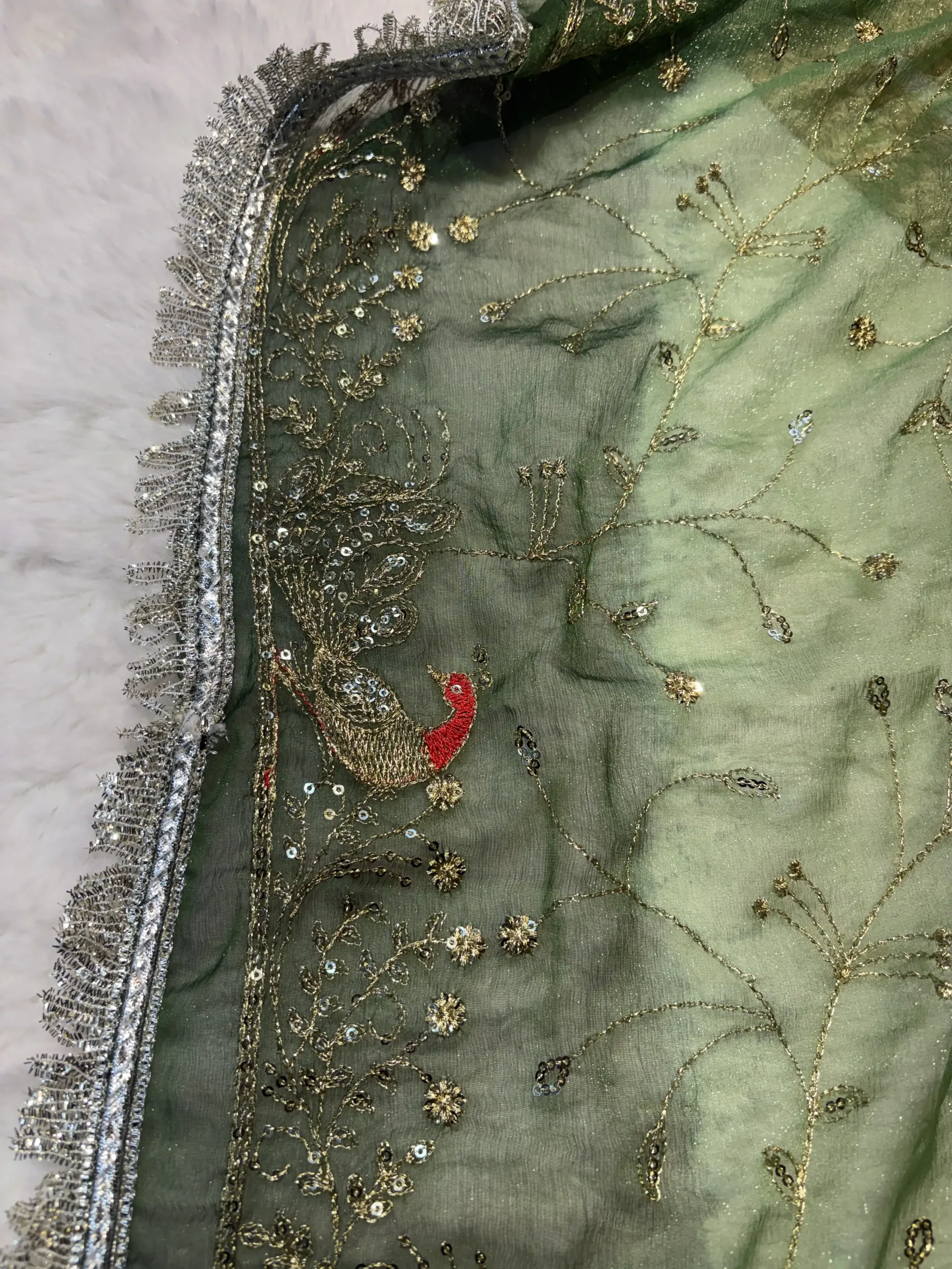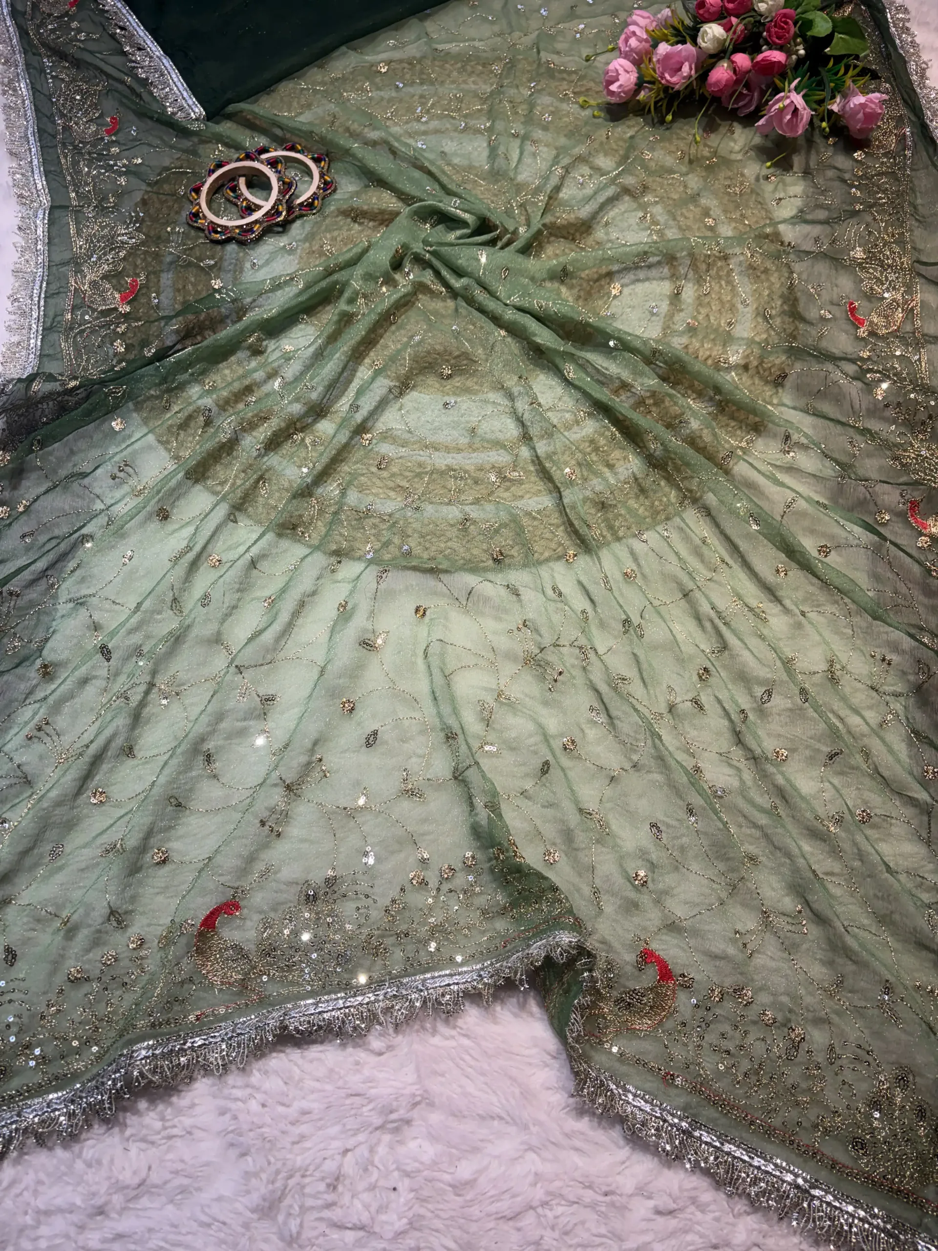 The fusion of peacock artistry, jaal elegance, and kiran border creates a truly majestic ethnic look.