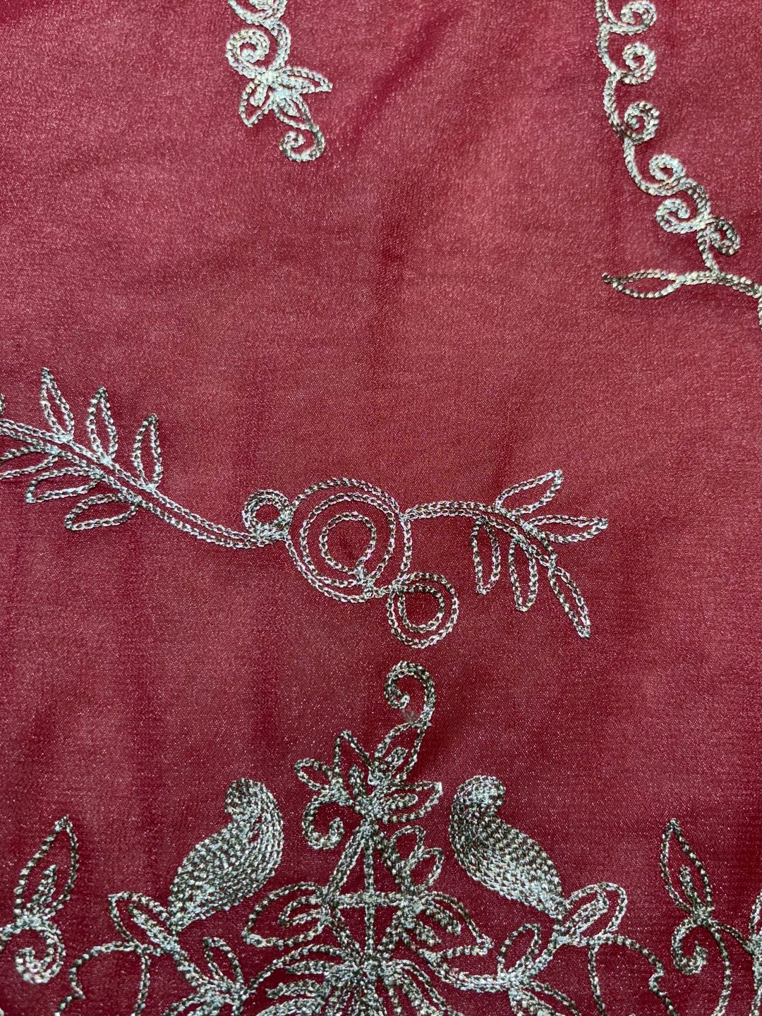 • Floral vines, leaf patterns, or geometric net-style weaving/embroidery